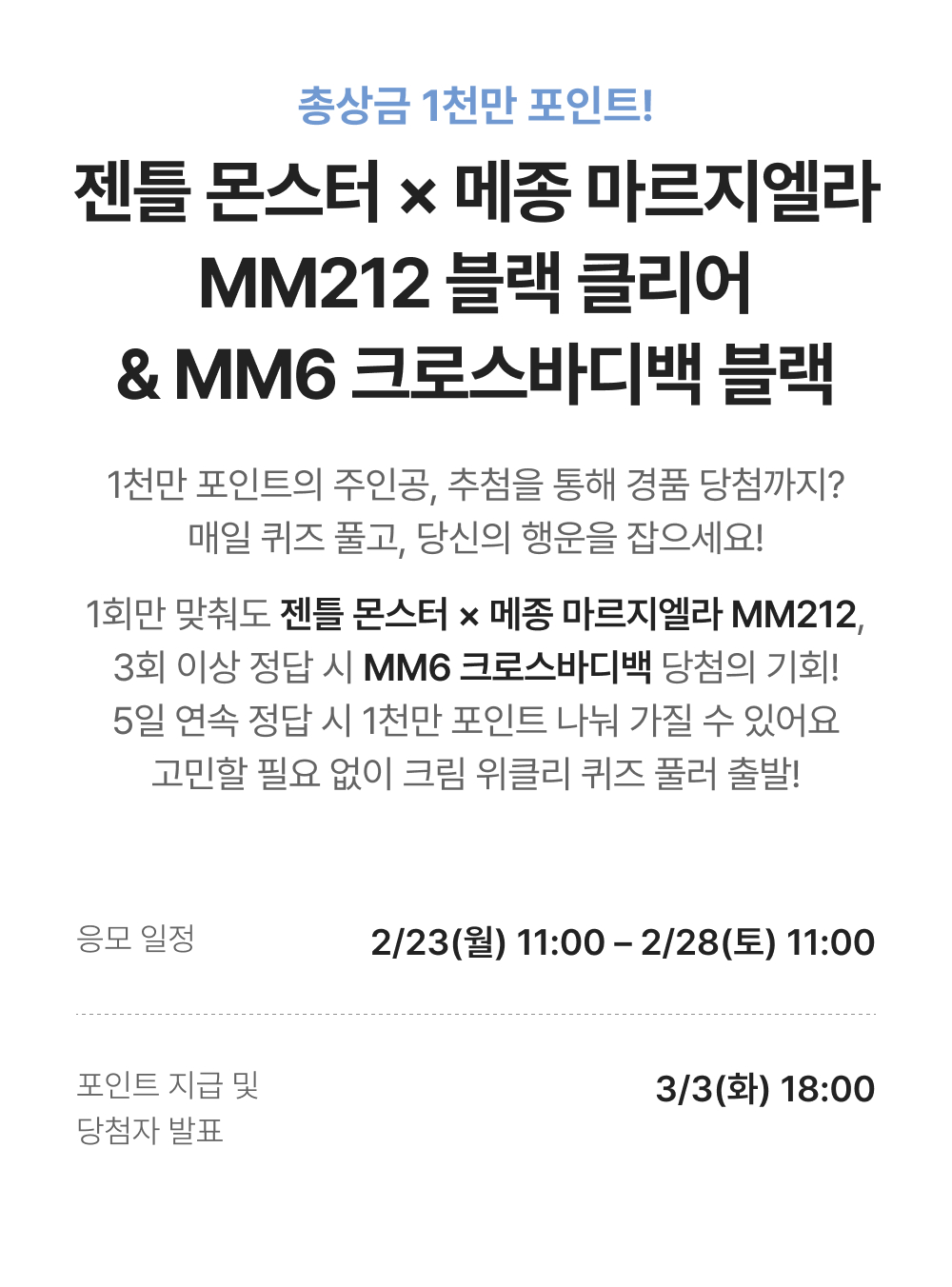 - 경품 당첨자는 26.3.3(화) 공지사항을 통해 확인 가능합니다.