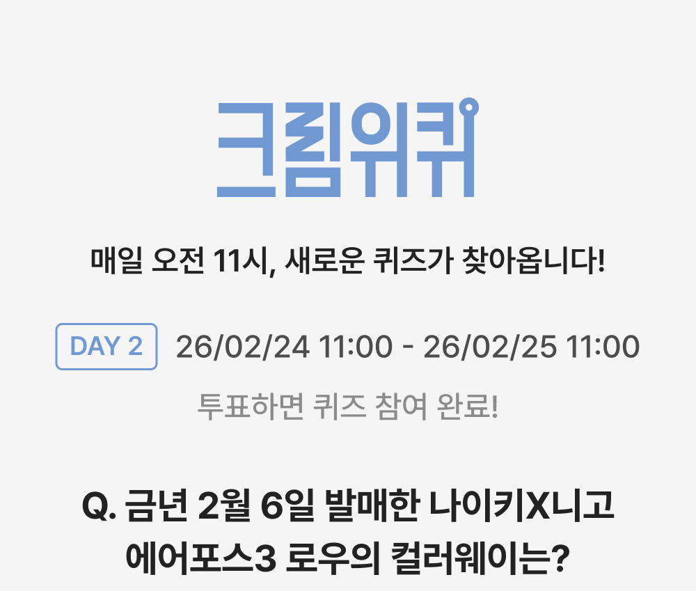 - 퀴즈는 매일 오전 11시 오픈되며, 제출 후 수정이 불가 합니다.