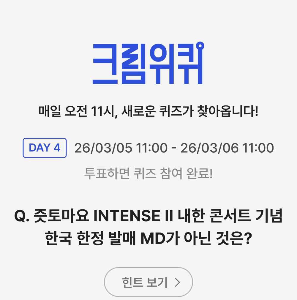 - 퀴즈는 매일 오전 11시 오픈되며, 제출 후 수정이 불가 합니다.