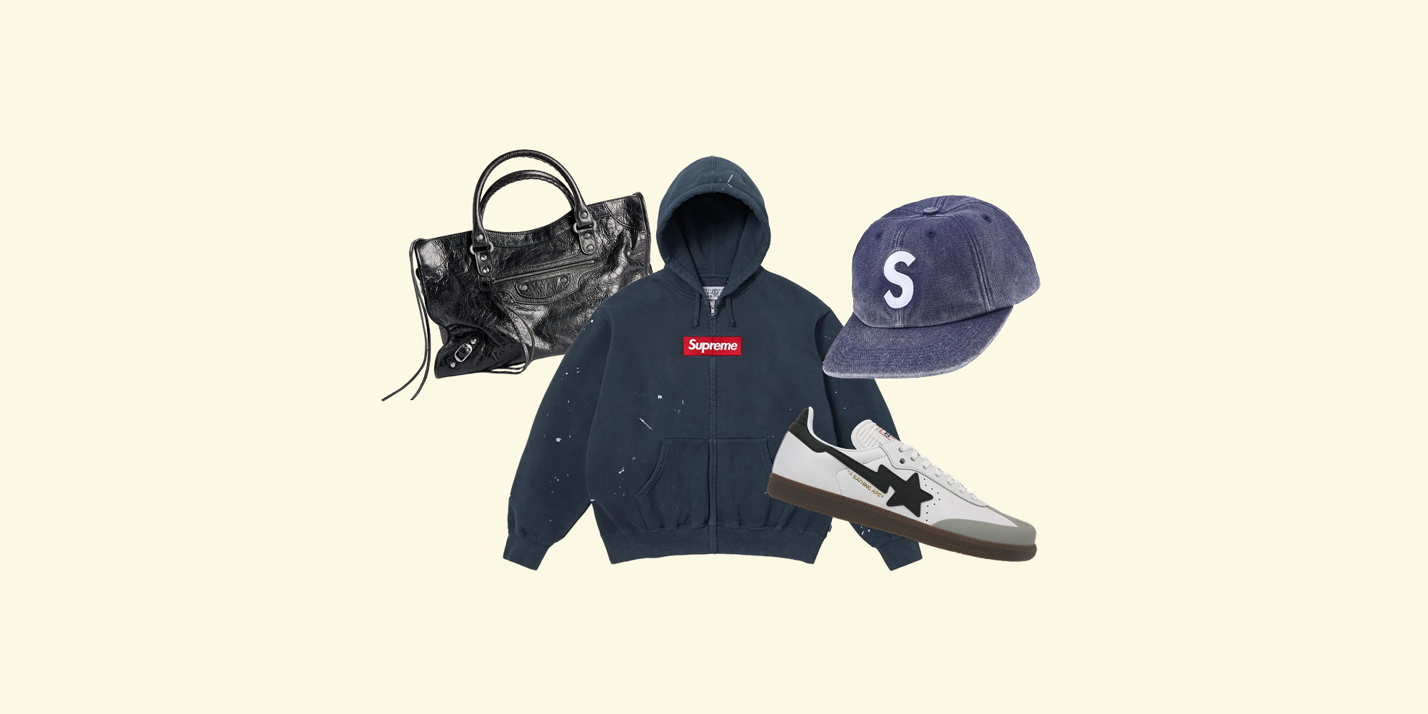 슈프림 x MM6 메종 마르지엘라 박스로고 집업 후드 스웨트셔츠 네이비 - 26SS