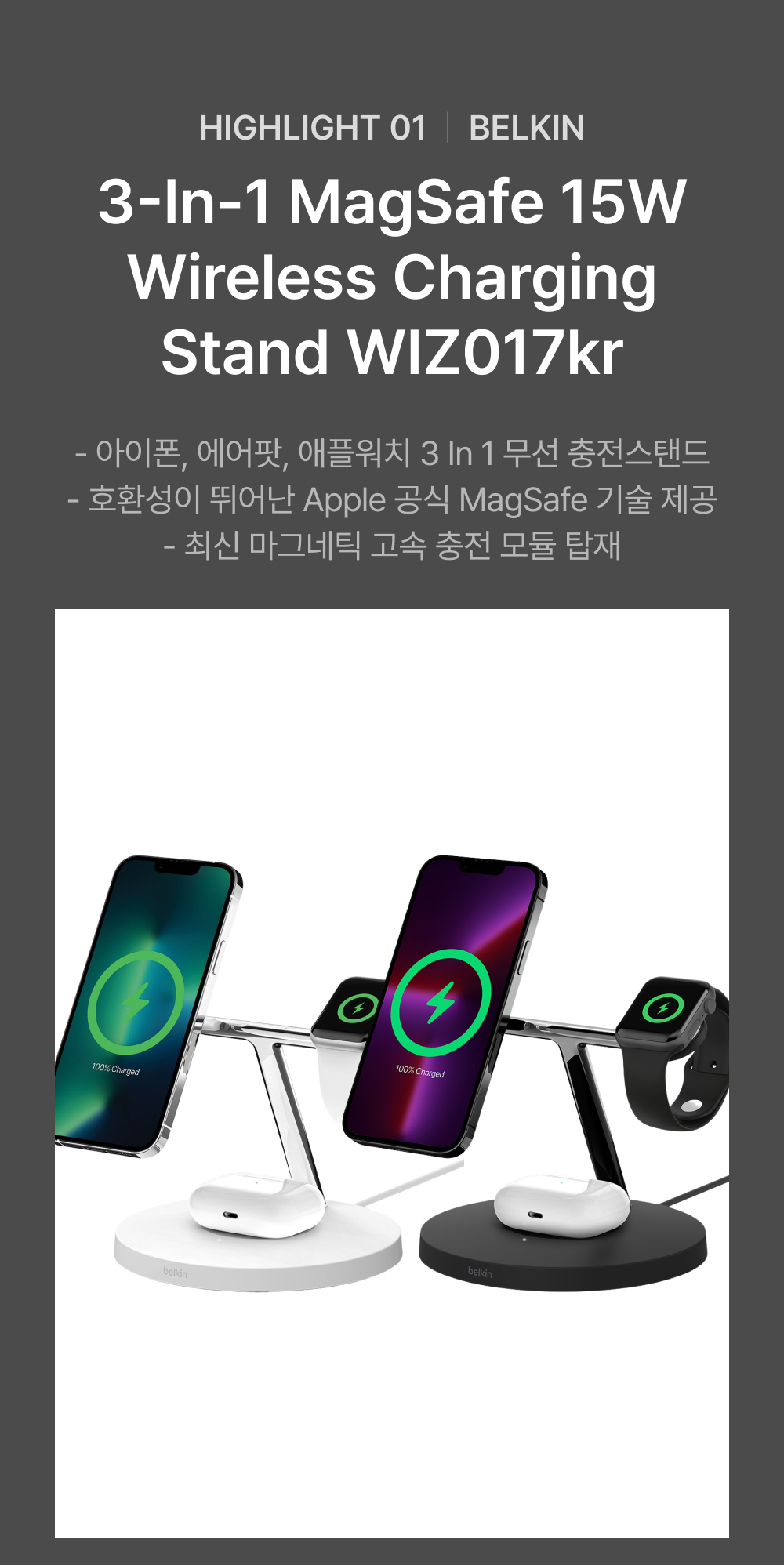 벨킨 3in1 맥세이프 15W 무선 충전 스탠드 WIZ017kr 화이트
