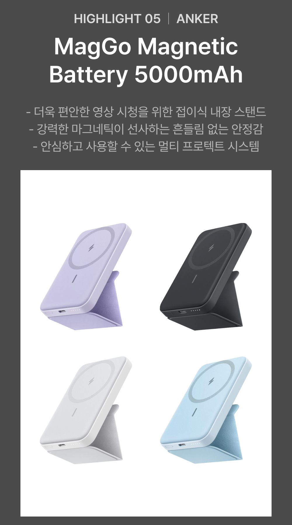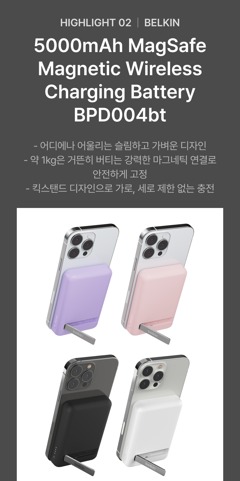벨킨 5000mAh 맥세이프 마그네틱 무선 충전 보조배터리 BPD004bt 퍼플