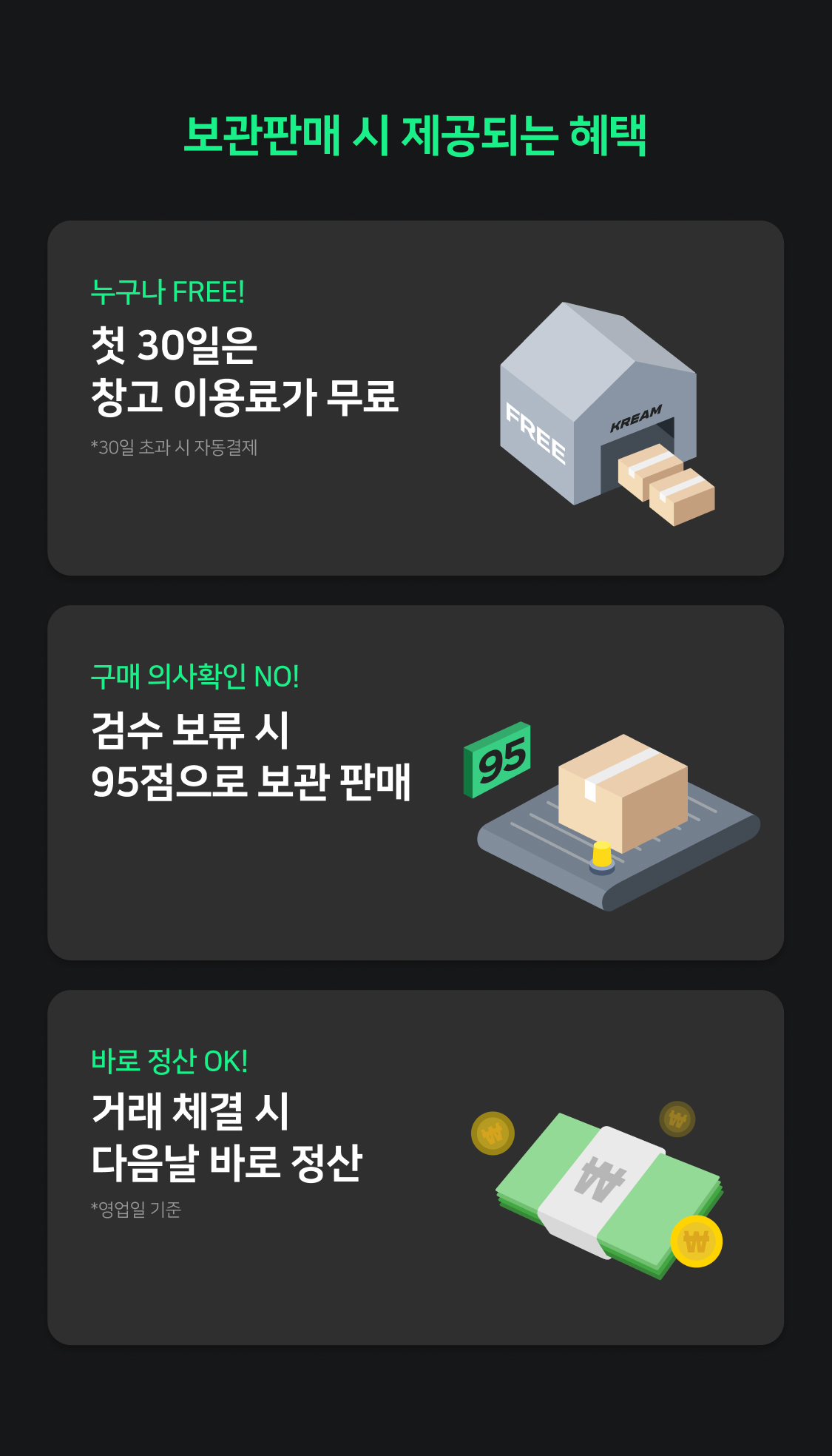 창고보관으로 구매하고 빠르게 판매하세요.