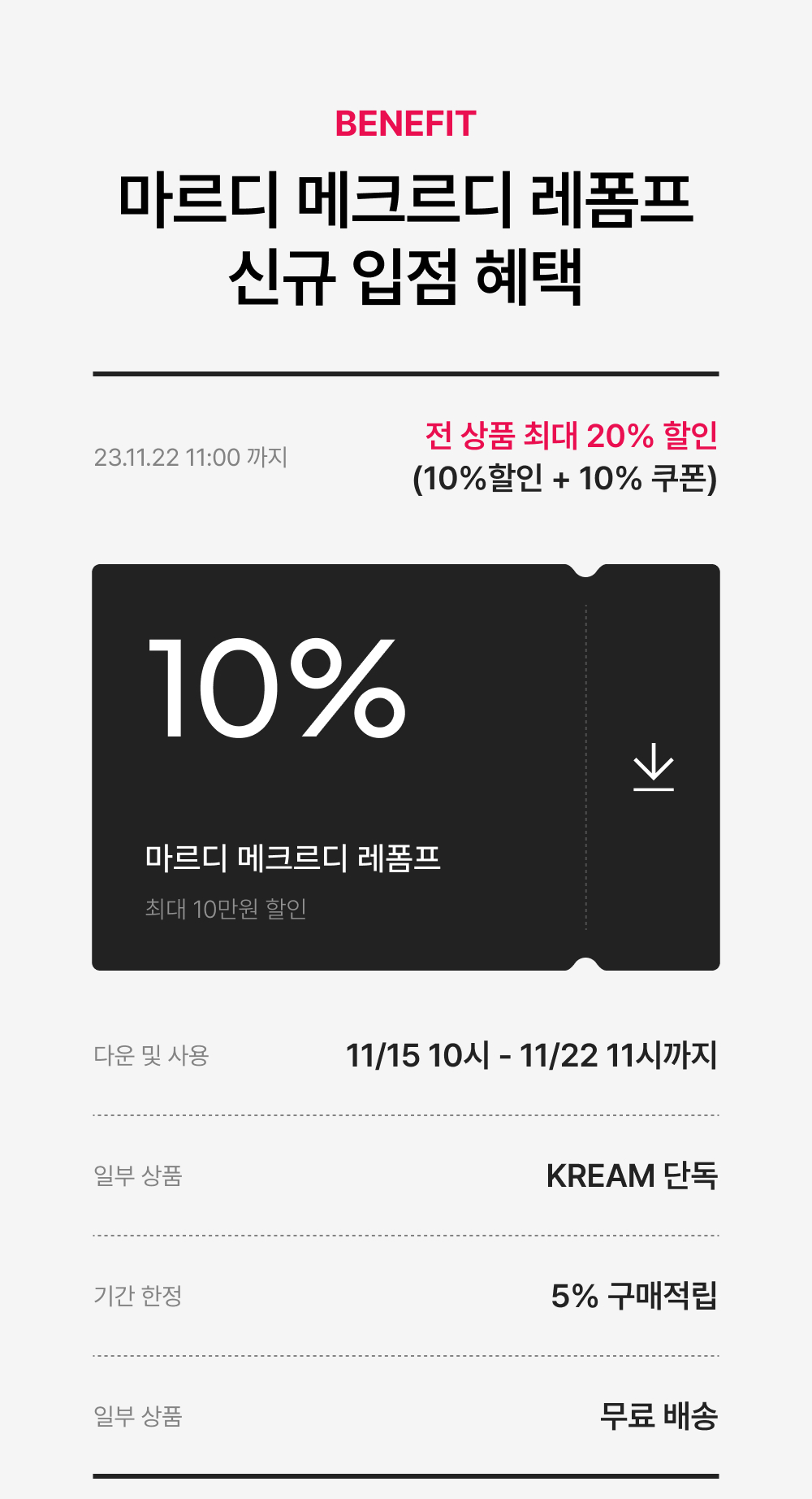 - 쿠폰은 발급 기간 내 계정 당 1회 다운 가능합니다.