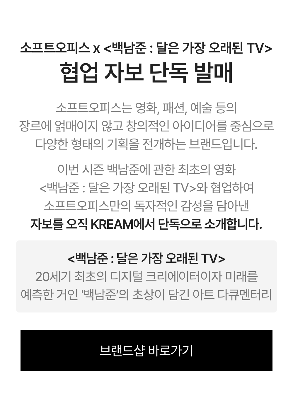 ![[KREAM 단독] 소프트오피스 x 백남준 자보 달은 가장 오래된 TV](https://kream-phinf.pstatic.net/MjAyNTA3MzFfMTA4/MDAxNzUzODg4NTY2NDQ2._yU7X2G_v5w0mfIDcC4iFvb3s_VQhPKGbtxcK7-GBGYg.CGv6lhu6d1Whf2eeT2_vnga1Dlo0uKJWBMJcjcG5YKAg.PNG/a_3a84eb9a6a824b33ac60cb28faeca1b1.png)