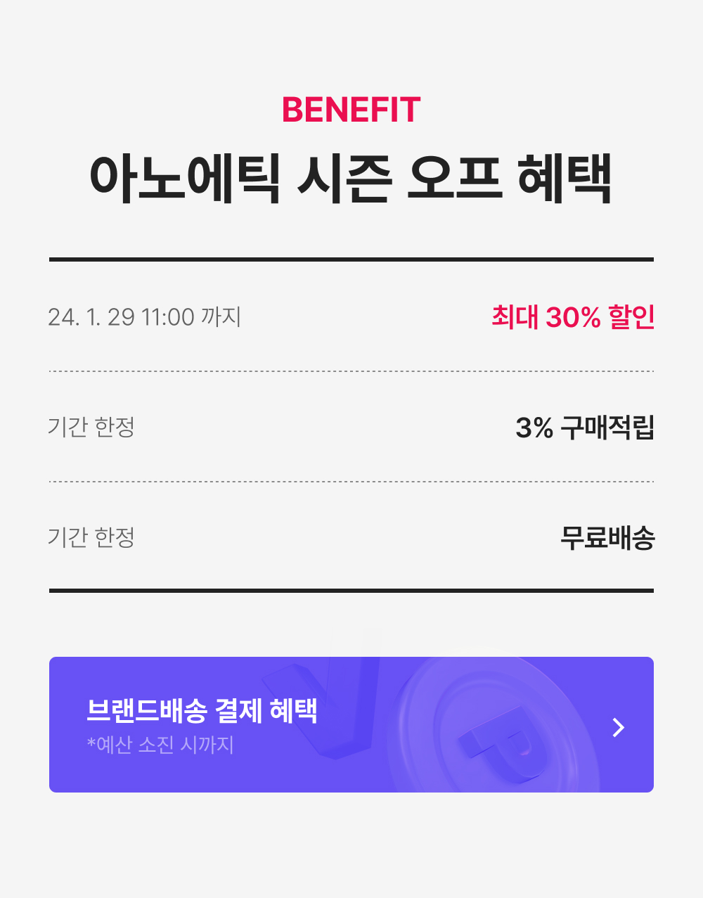 [~26/01/29(목) 오전 11시] ~70% 할인