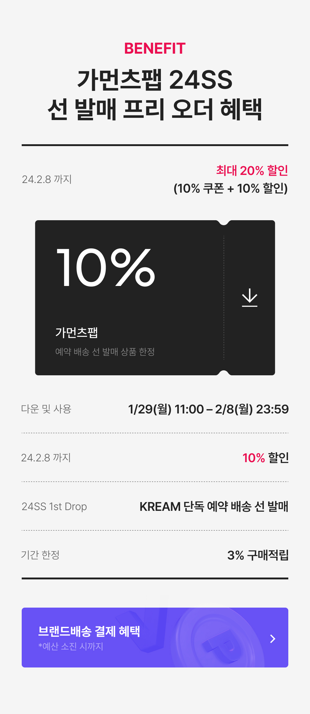 - 본 쿠폰은 본 기획전 내 프리오더 상품에 한해 적용 가능합니다.