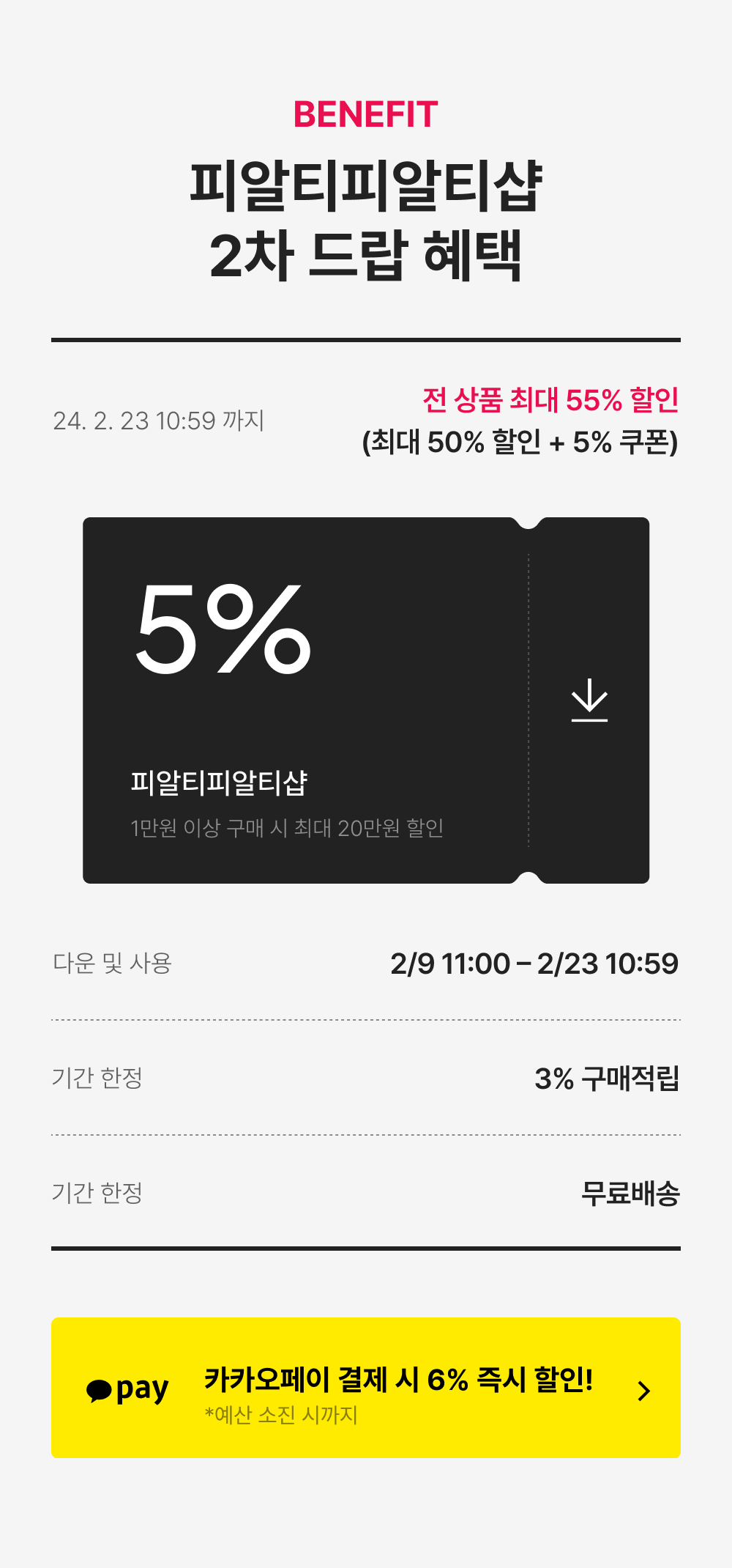 - 본 쿠폰은 피티알피티알샵 상품에 한해 적용 가능하며, 일부 상품은 적용 불가합니다.