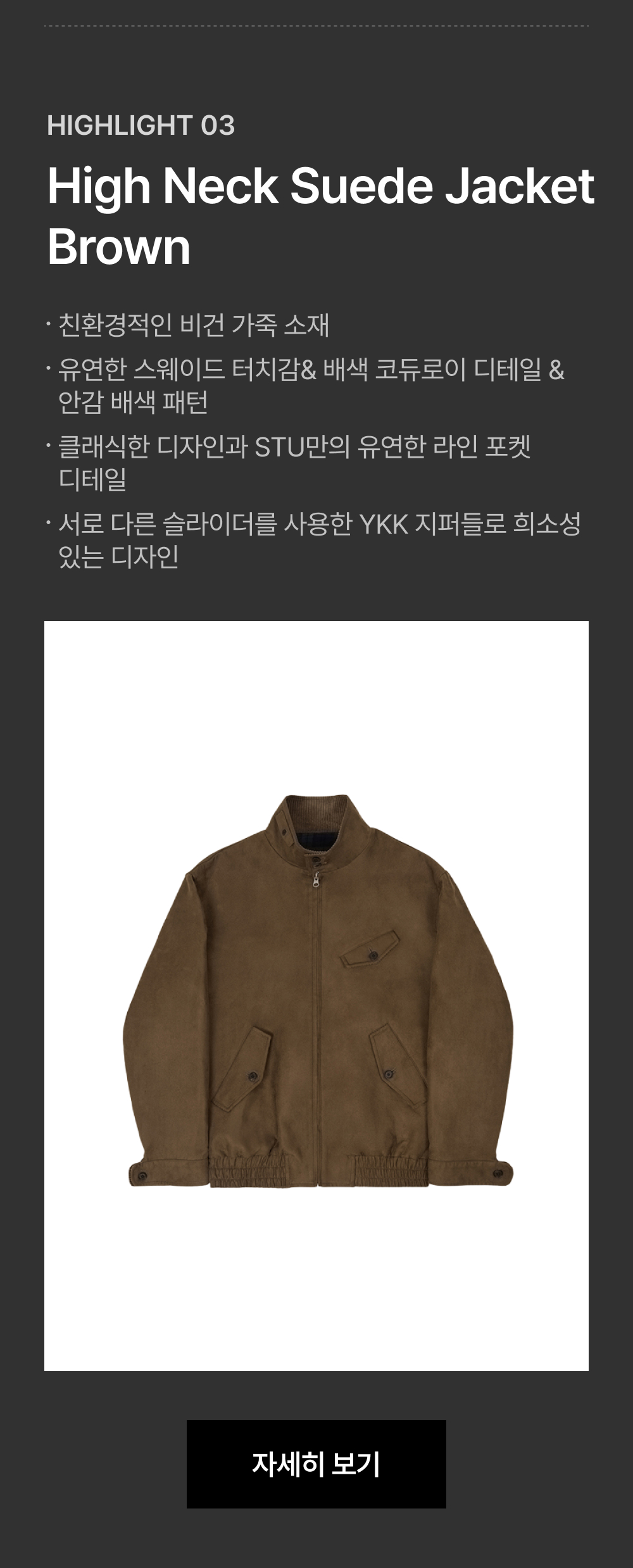 에스티유 하이넥 스웨이드 자켓 브라운
