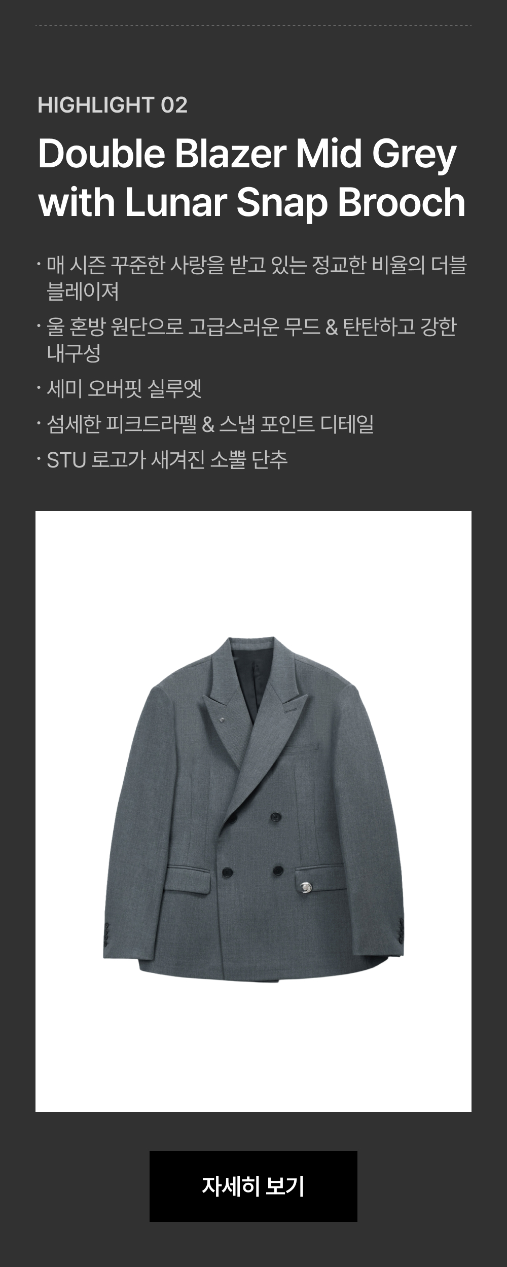 에스티유 더블 블레이져 미드 그레이 + 루나 스냅 브로치 동봉