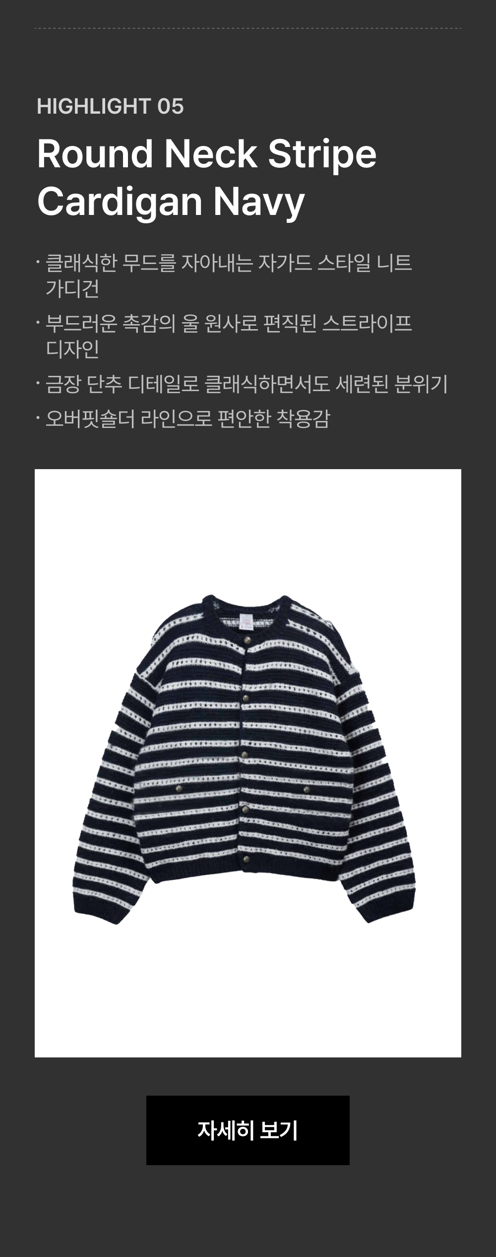 에스티유 라운드 넥 스트라이프 가디건 네이비