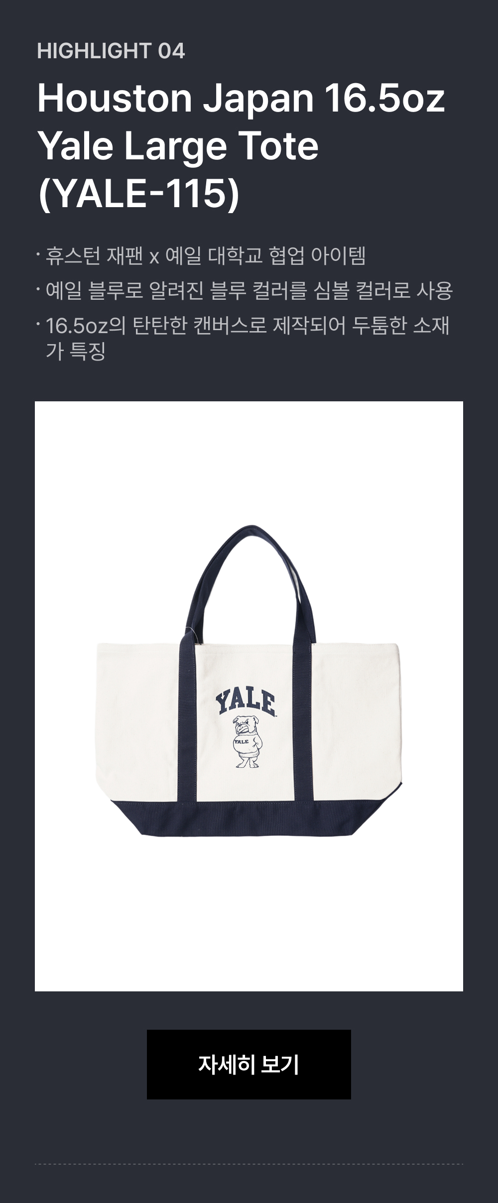 휴스턴 재팬 16.5oz 예일 라지 토트 YALE-115