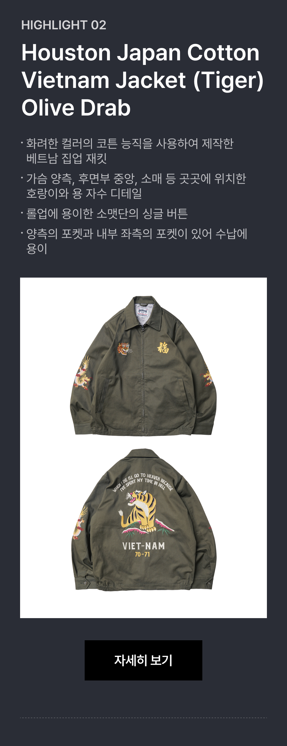 휴스턴 재팬 코튼 베트남 자켓 타이거 블랙 51350BK