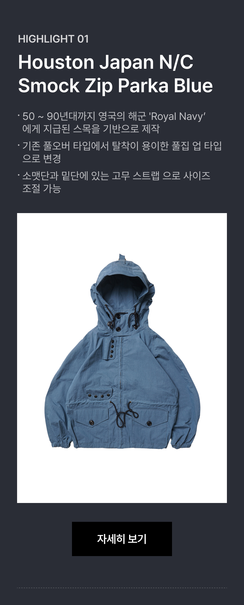 휴스턴 재팬 NC 스모크 집 파카 블루 51368BL