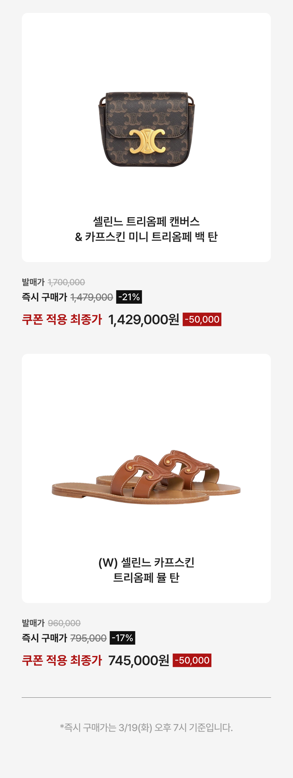 셀린느 스무스 카프스킨 폴코 레더 트리옹프 탄
