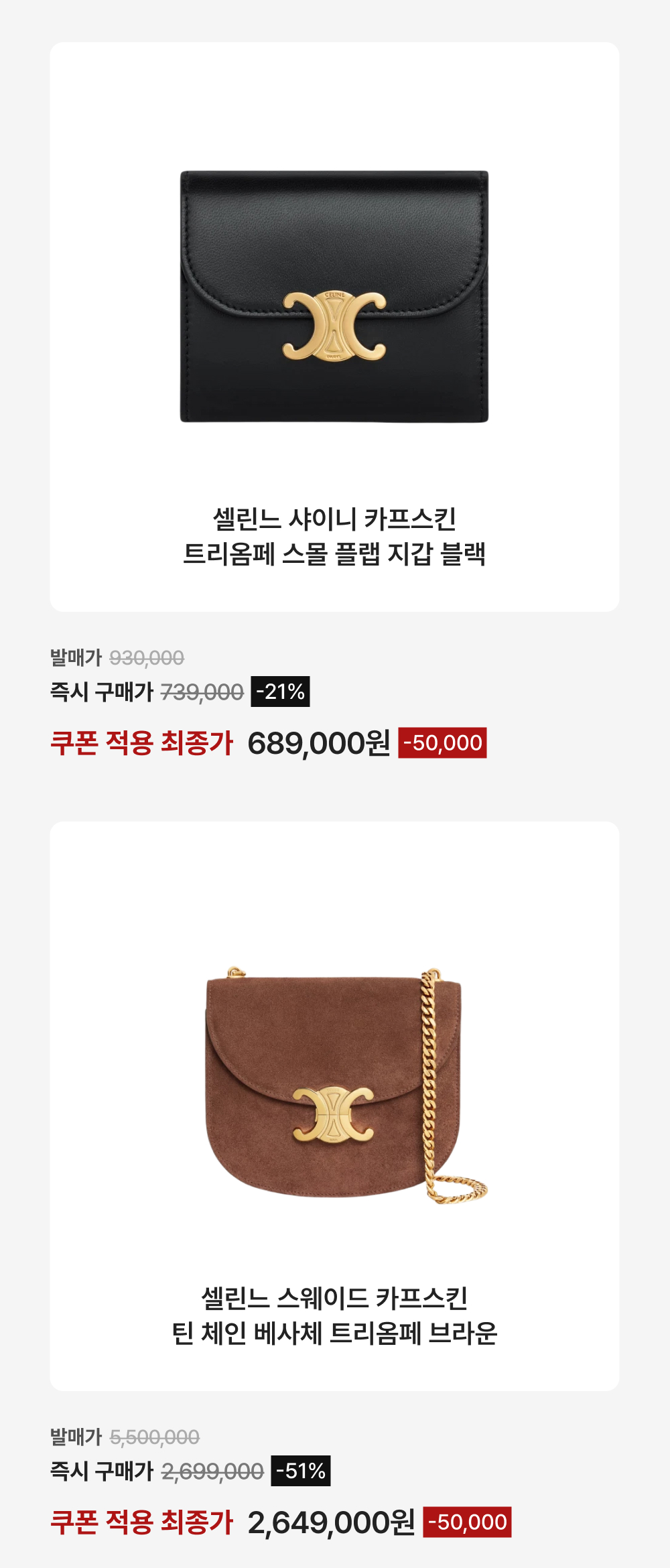 셀린느 스무스 카프스킨 오발 백 레더 트리옹프 탄