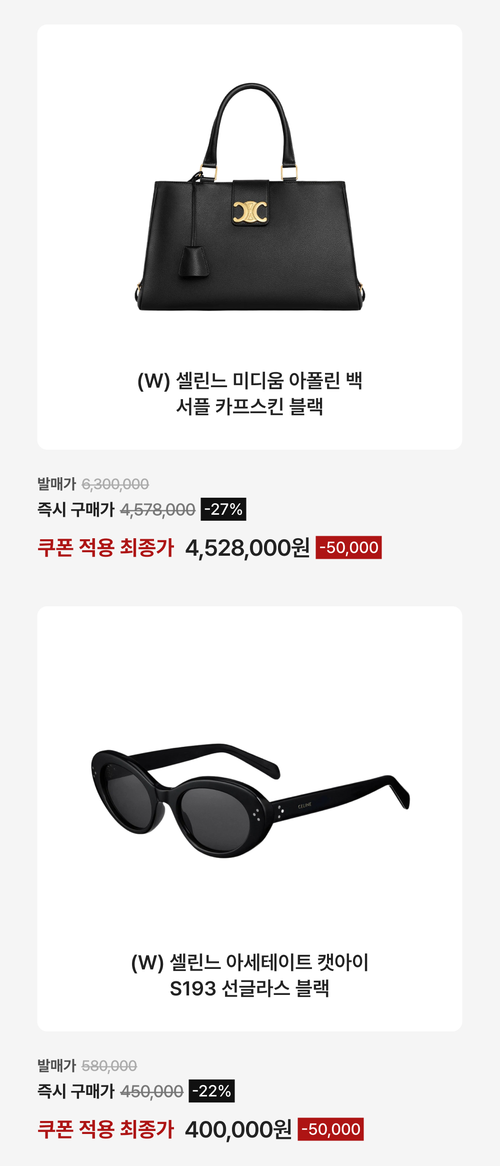 (W) 셀린느 미디움 아폴린 백 서플 카프스킨 블랙