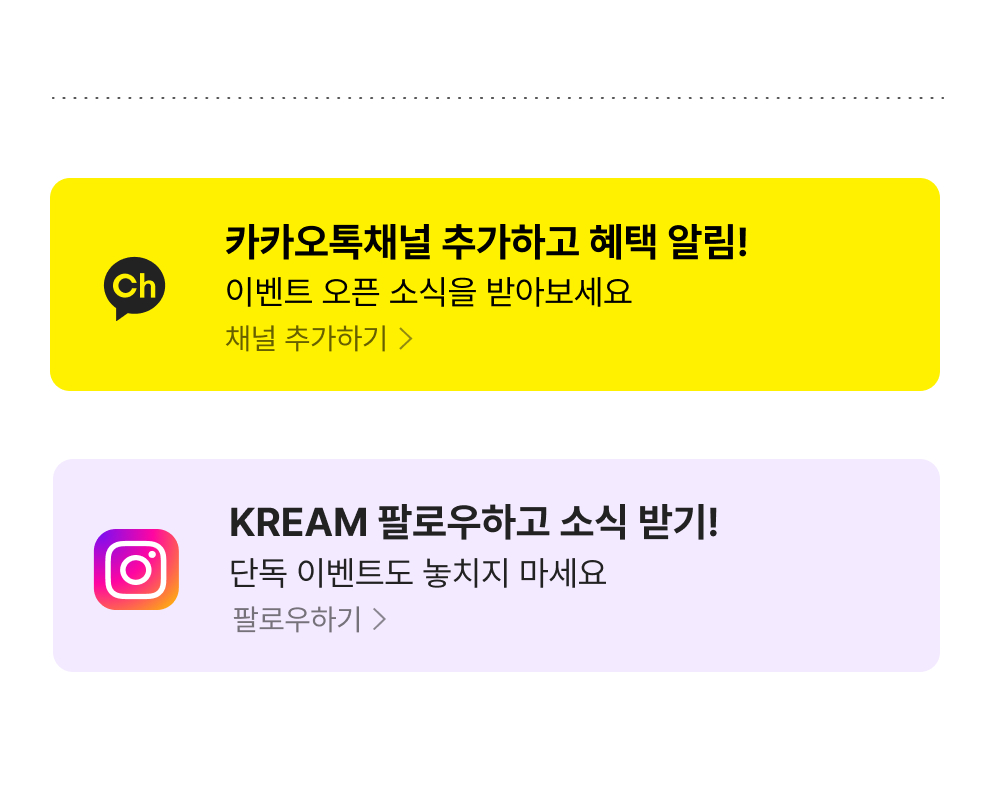 크림(주)는 통신판매 중개자로서 통신판매의 당사자가 아닙니다. 본 상품은 개별판매자가 등록한 상품으로 상품, 상품정보, 거래에 관한 의무와 책임은 각 판매자에게 있습니다. 단, 이용약관 및 정책, 기타 거래 체결 과정에서 고지하는 내용 등에 따라 검수하고 보증하는 내용에 대한 책임은 크림(주)에 있습니다.