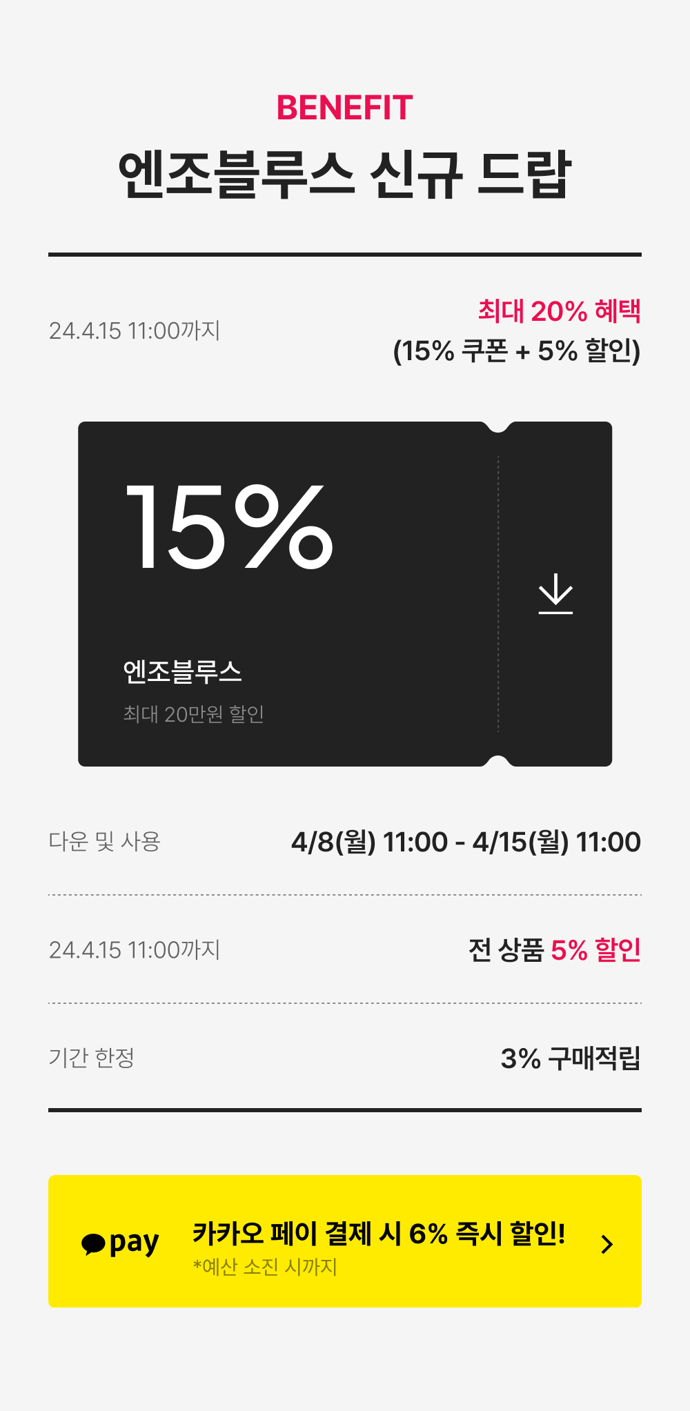 - 본 쿠폰은 해당 페이지 내 상품에 한해 적용 가능하며, 일부 상품은 적용 불가합니다.