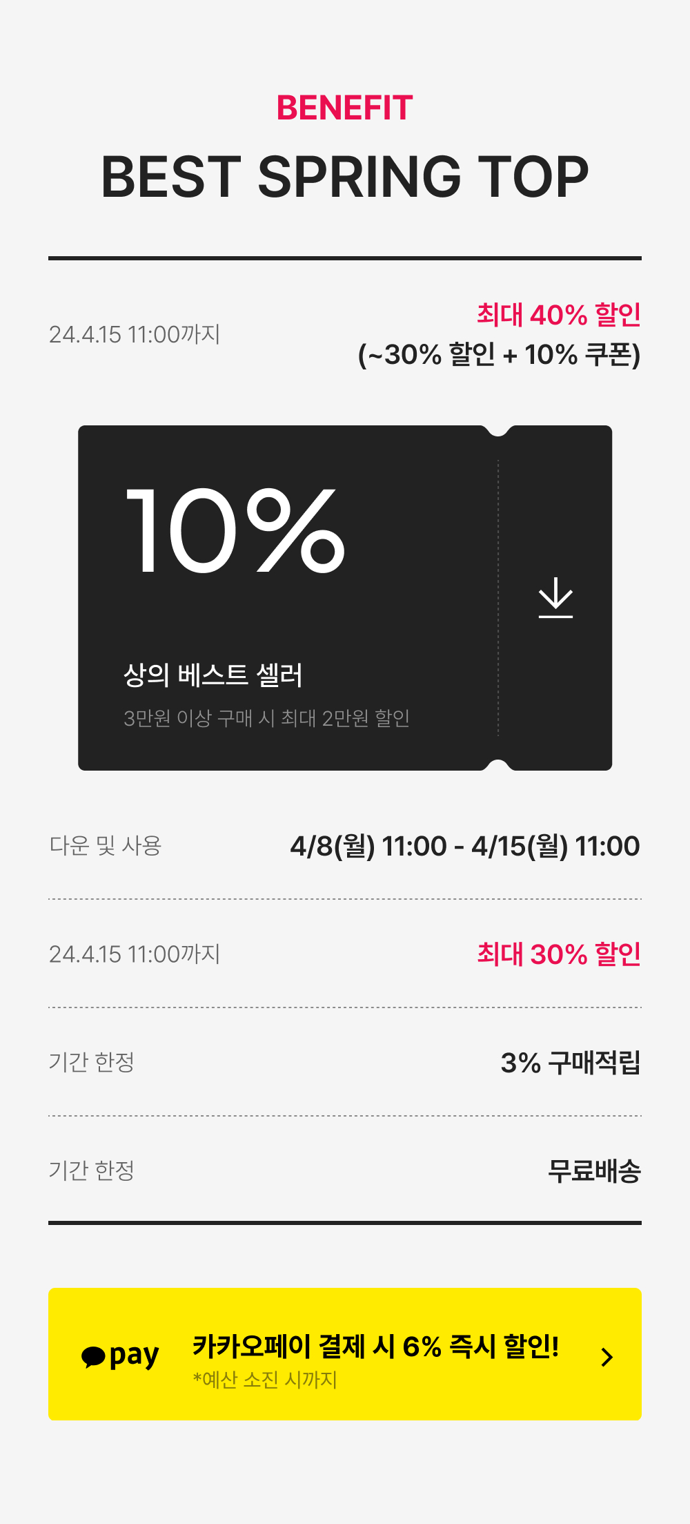[~26/1/26(월) 오전 11시] 15% | 10% 쿠폰