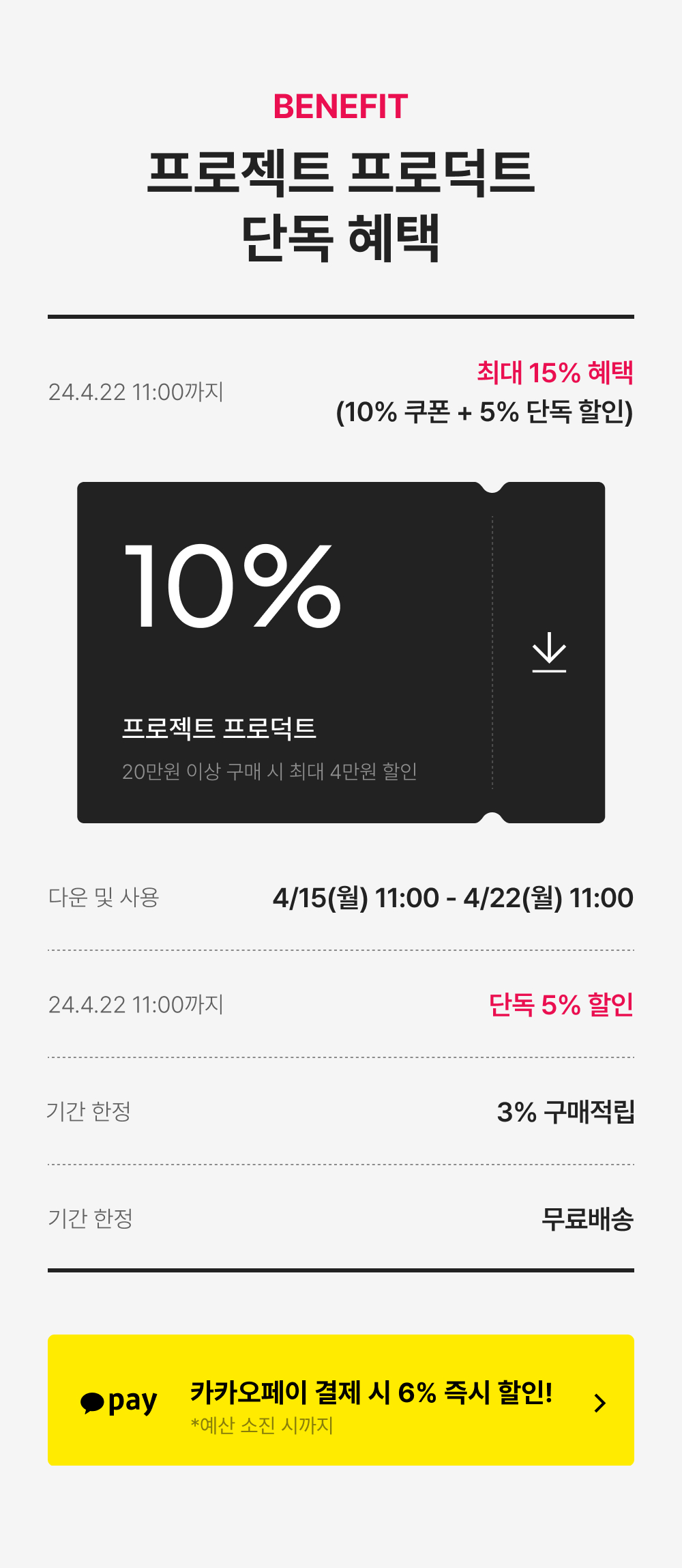 [~26/1/26(월) 오전 11시] 15% | 10% 쿠폰
