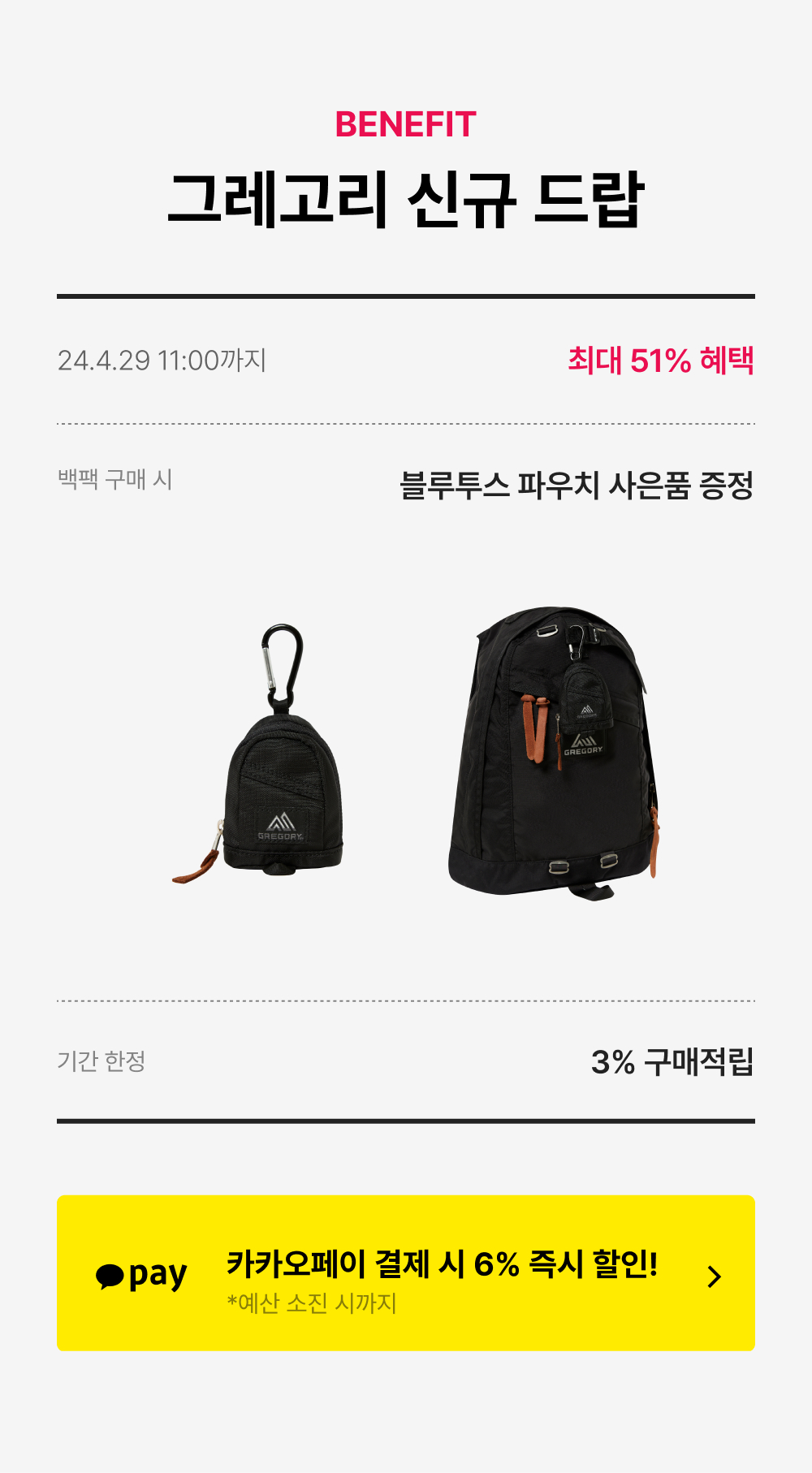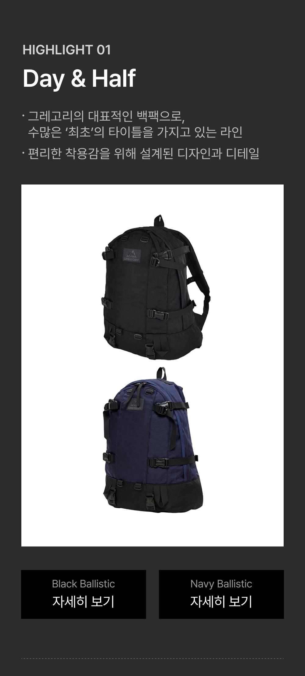 그레고리 하프데이 미니 백팩 블랙발리스틱