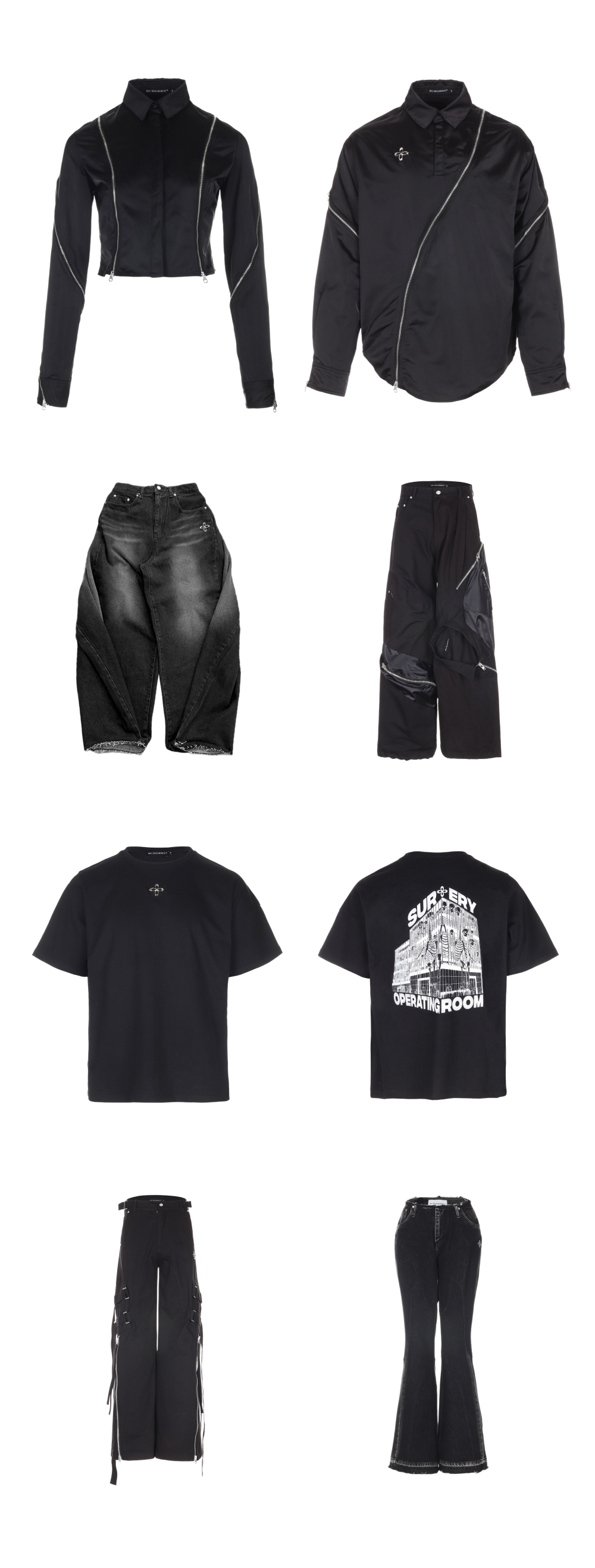 Surgery Balanced Zippers Detail Crop Shirts Black