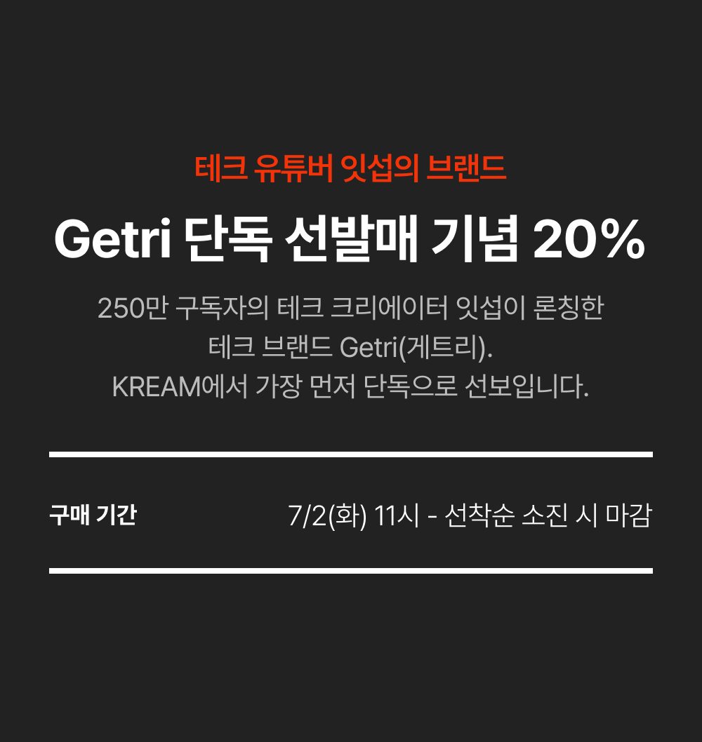 크림(주)는 통신판매 중개자로서 통신판매의 당사자가 아닙니다. 본 상품은 개별판매자가 등록한 상품으로 상품, 상품정보, 거래에 관한 의무와 책임은 각 판매자에게 있습니다. 단, 이용약관 및 정책, 기타 거래 체결 과정에서 고지하는 내용 등에 따라 검수하고 보증하는 내용에 대한 책임은 크림(주)에 있습니다.