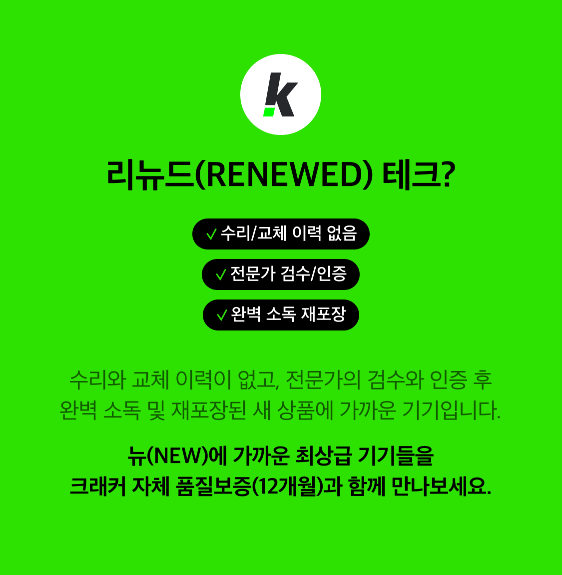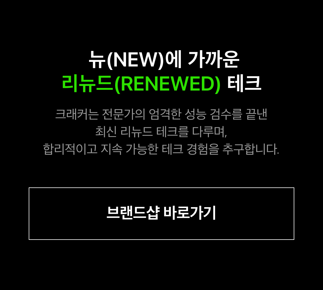 크래커는 전문가의 엄격한 성능 검수를 끝낸 최신 리뉴드 테크를 다루며, 합리적이고 지속 가능한 테크 경험을 추구합니다.