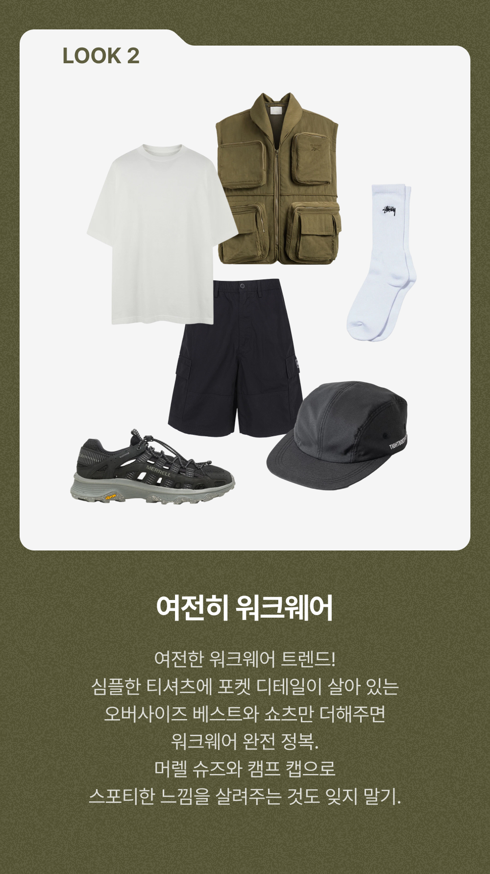 헤드 메이너 x 리복 포켓티드 베스트 아미 그린 - 24FW