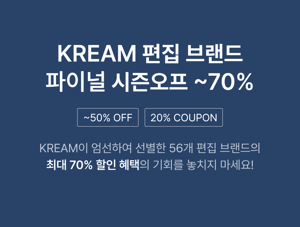 크림 주식회사 · 대표 김창욱사업자등록번호 : 570-88-01618 사업자정보확인통신판매업 : 제 2021-성남분당C-0093호사업장소재지 : 경기도 성남시 분당구 분당내곡로 131 판교테크원 타워1, 7층호스팅 서비스 : 네이버 클라우드 ㈜전화 : 1588-7813이메일 : help@kream.co.kr