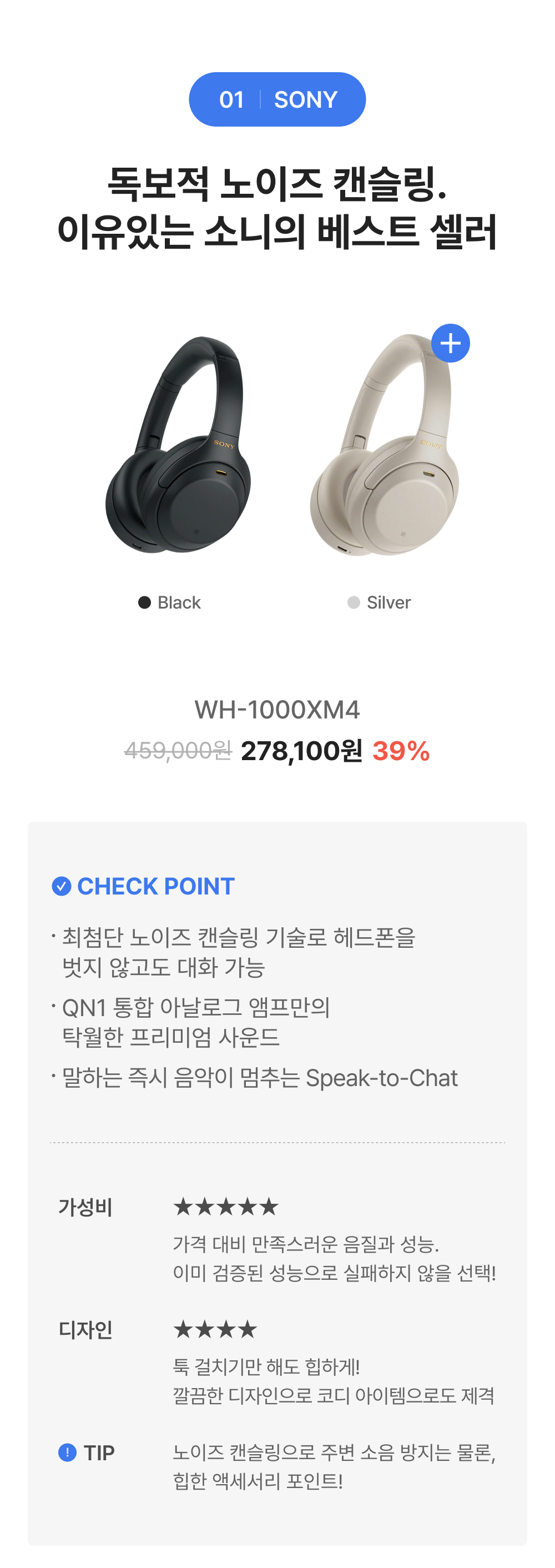 소니 WH-1000XM4 실버 (소니 코리아 정식 발매 제품)