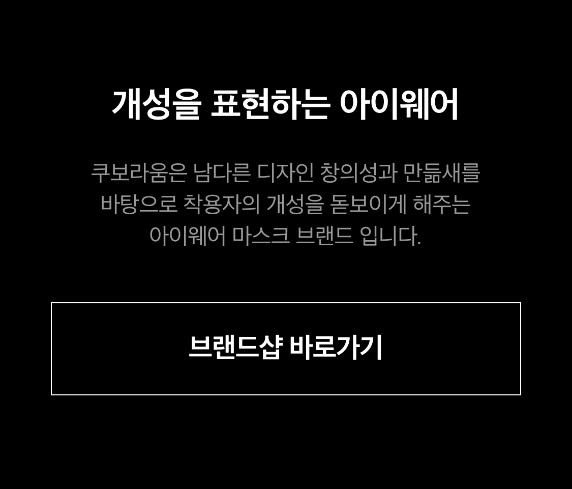 쿠보라움은 착용자의 개성을 부각시키고 성격을 강조하는 아이웨어 마스크입니다.