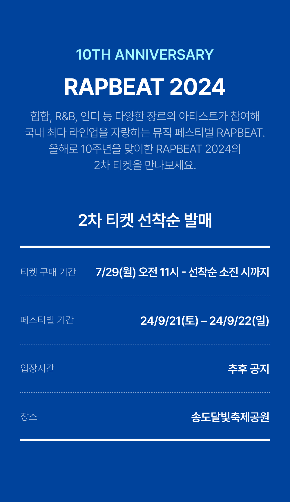 - 본 티켓은 1주문 당 1매, 1인 최대 4매까지 예매 가능하며, 초과 구매 시 사전 고지 없이 취소될 수 있습니다.