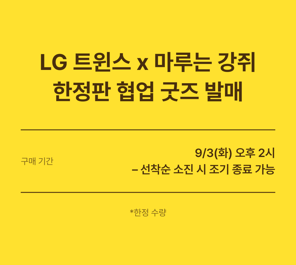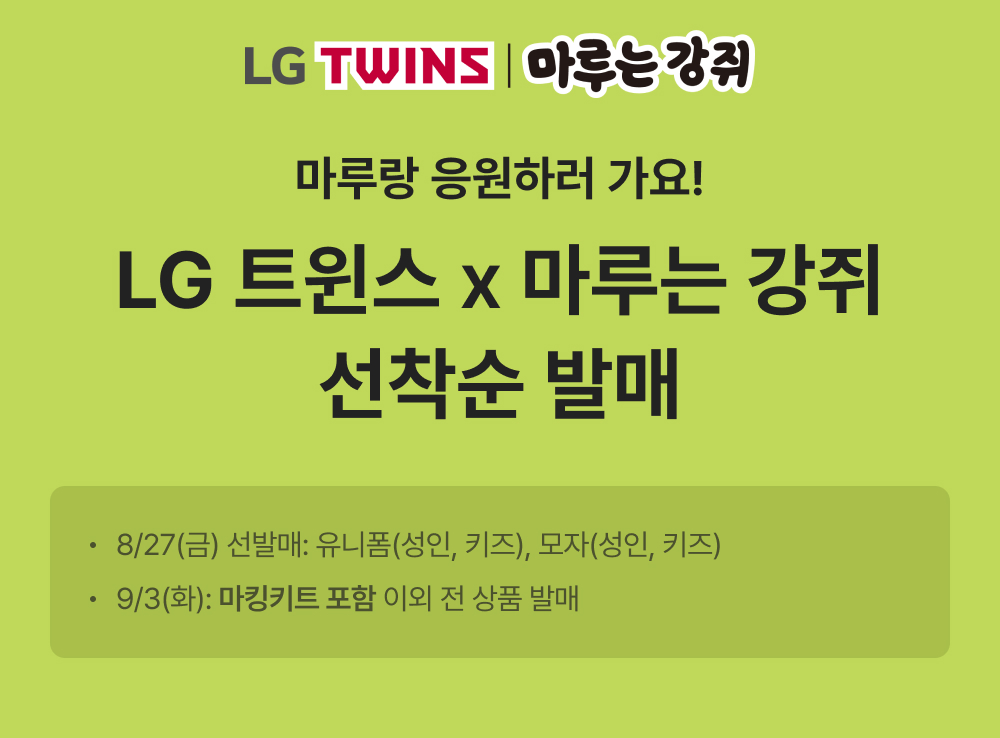 ![[즉시배송] LG트윈스 x 마루는강쥐 스티커팩](https://kream-phinf.pstatic.net/MjAyNDA4MjNfMjYx/MDAxNzI0Mzk0NjA5MDE0._XotPyG3qitMflrKtrvi0zFBWpOT0Xpotg7rr5lGFQsg.7wjZtAa0WJ1r4K0oZbx5JsYZIzEj0b8vCkPD-H7WcDEg.JPEG/a_b6cf878c63b44edfb1913b5cbcb5b3db.jpg)