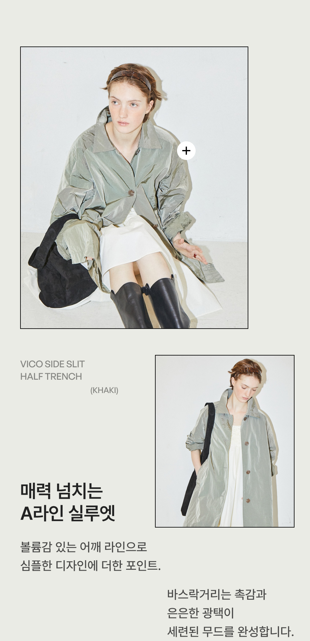 FARVEN Vico Side Slit Half Trench Khaki