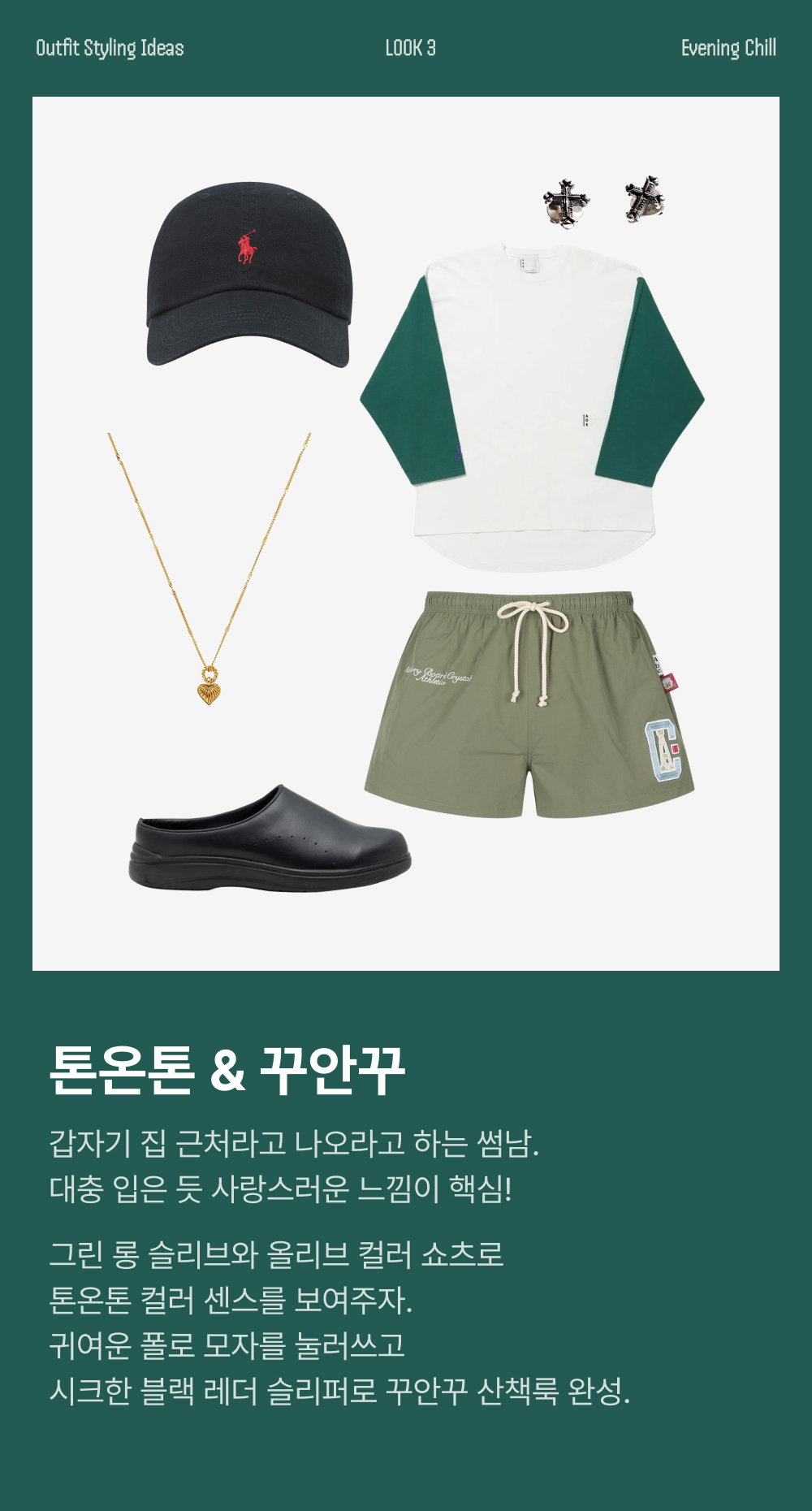 에이오알 베이스볼 티셔츠 오프 화이트 그린
