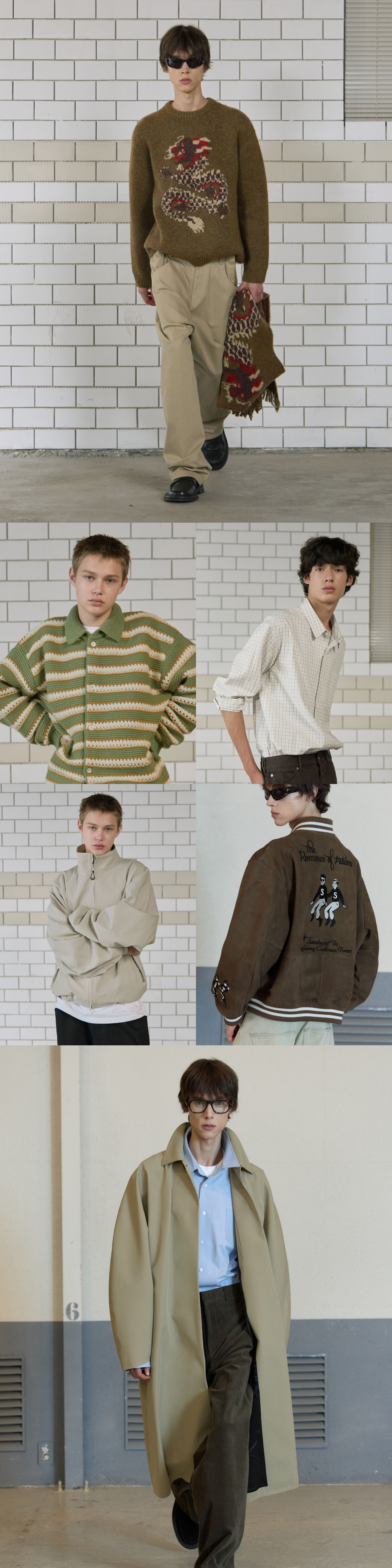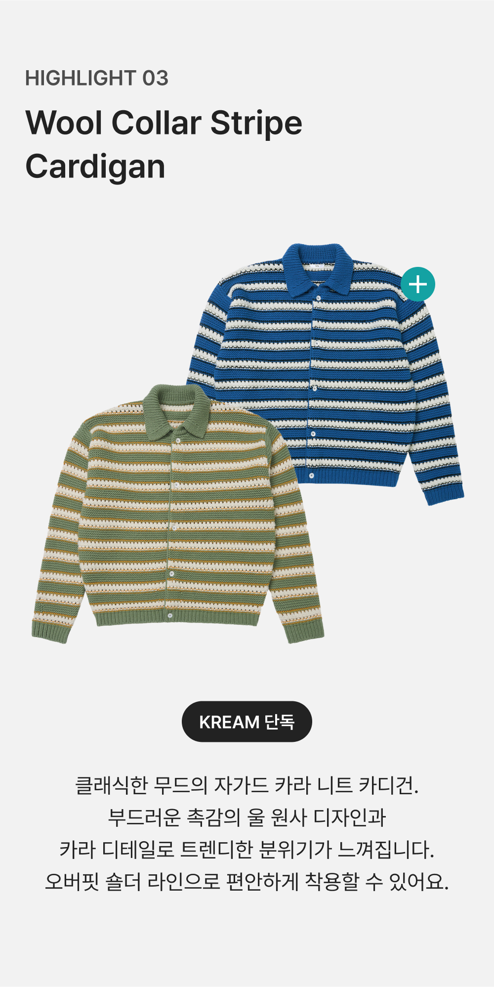 에스티유 울 카라 스트라이프 가디건 올리브그린