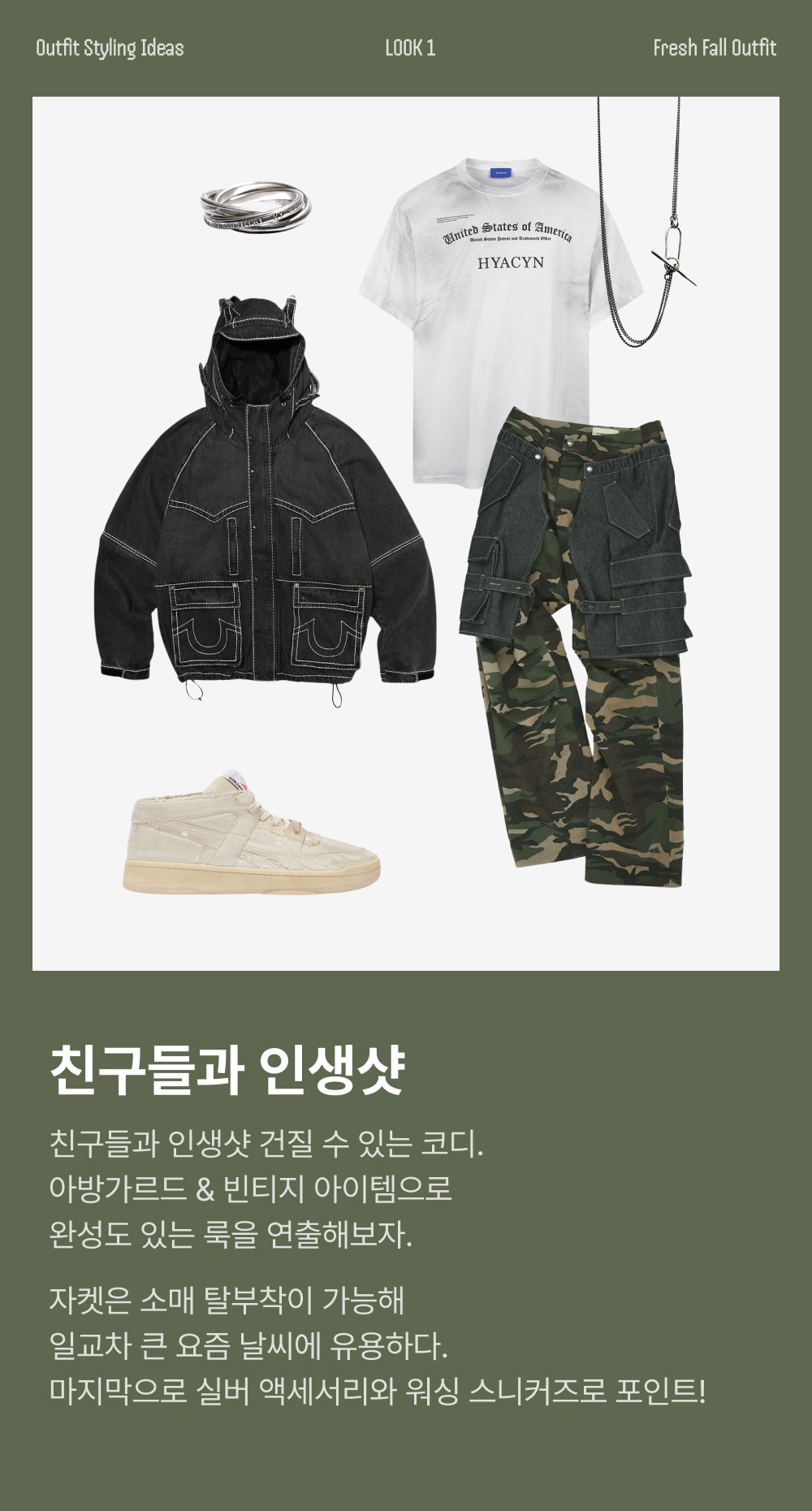 헤드 메이너 x 리복 티셔츠 아미 그린 - 24FW