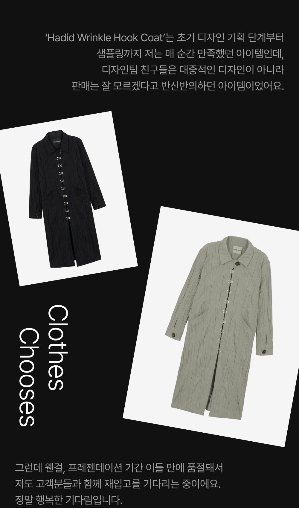 베이컨트 아카이브 유니섹스 하디드 링클 후크 코트 블랙