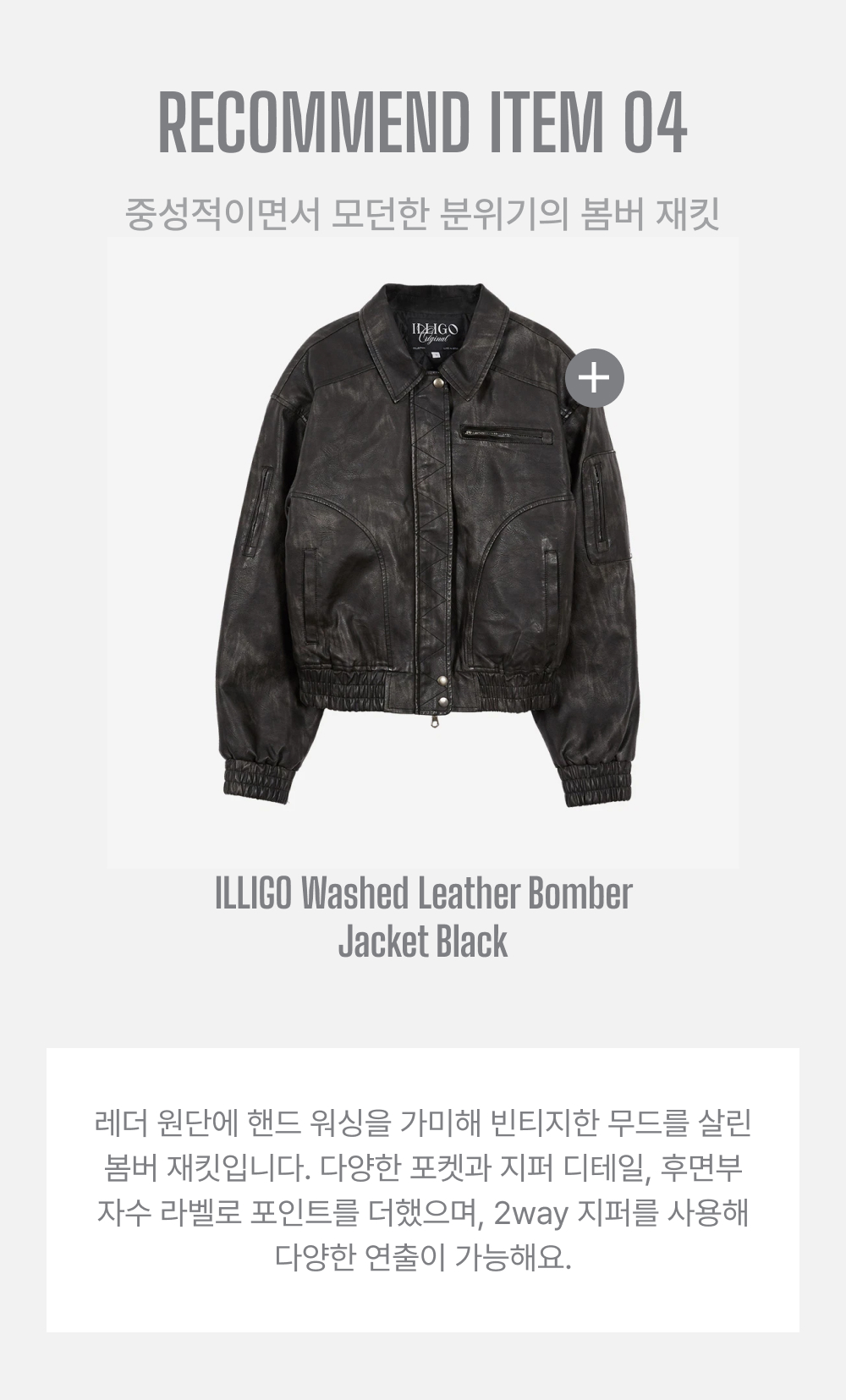 풀오브썬 후드 카고 크롭 레더 자켓 그레이