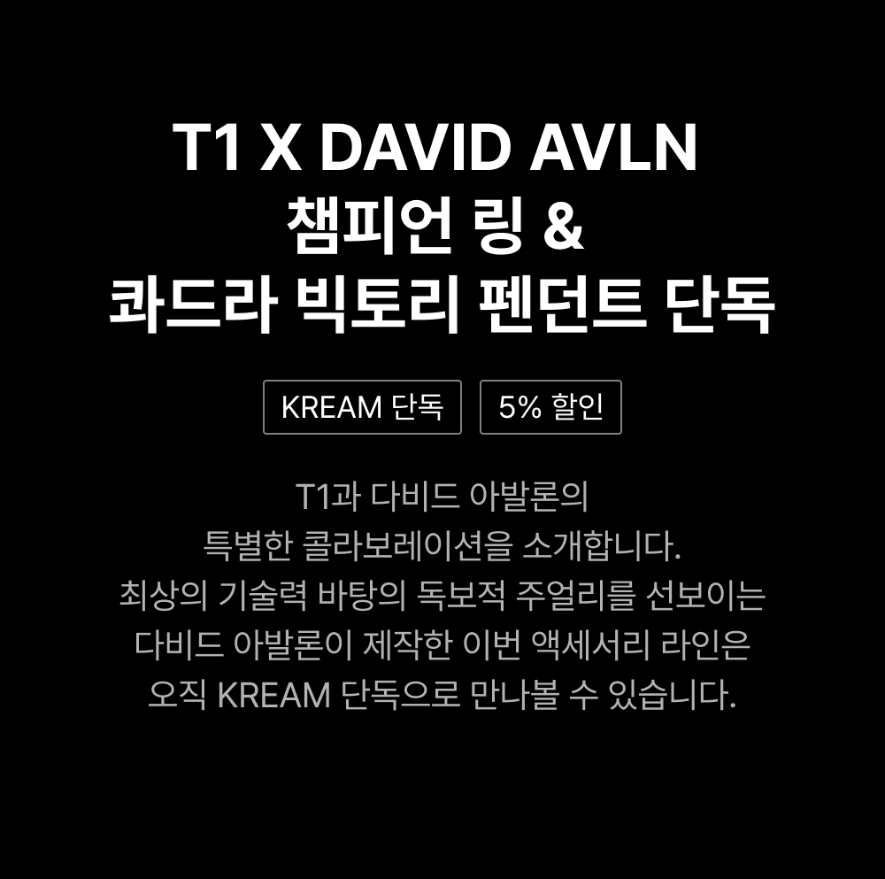 ![[KREAM 단독] T1 x DAVID AVLN 챔피언쉽 링 하프](https://kream-phinf.pstatic.net/MjAyNTA3MzFfMTgx/MDAxNzUzODkwMTUzOTIx.cgAP0wlfIcjtGSx0xxbWmfF9ER2ZGhkVRMfVZeRdH8Yg.V9o93jykf45Lfe0WD7F6Mq9D607zGImZn6lw255II_cg.PNG/a_00500eddea324c4481372ad59907cc64.png)