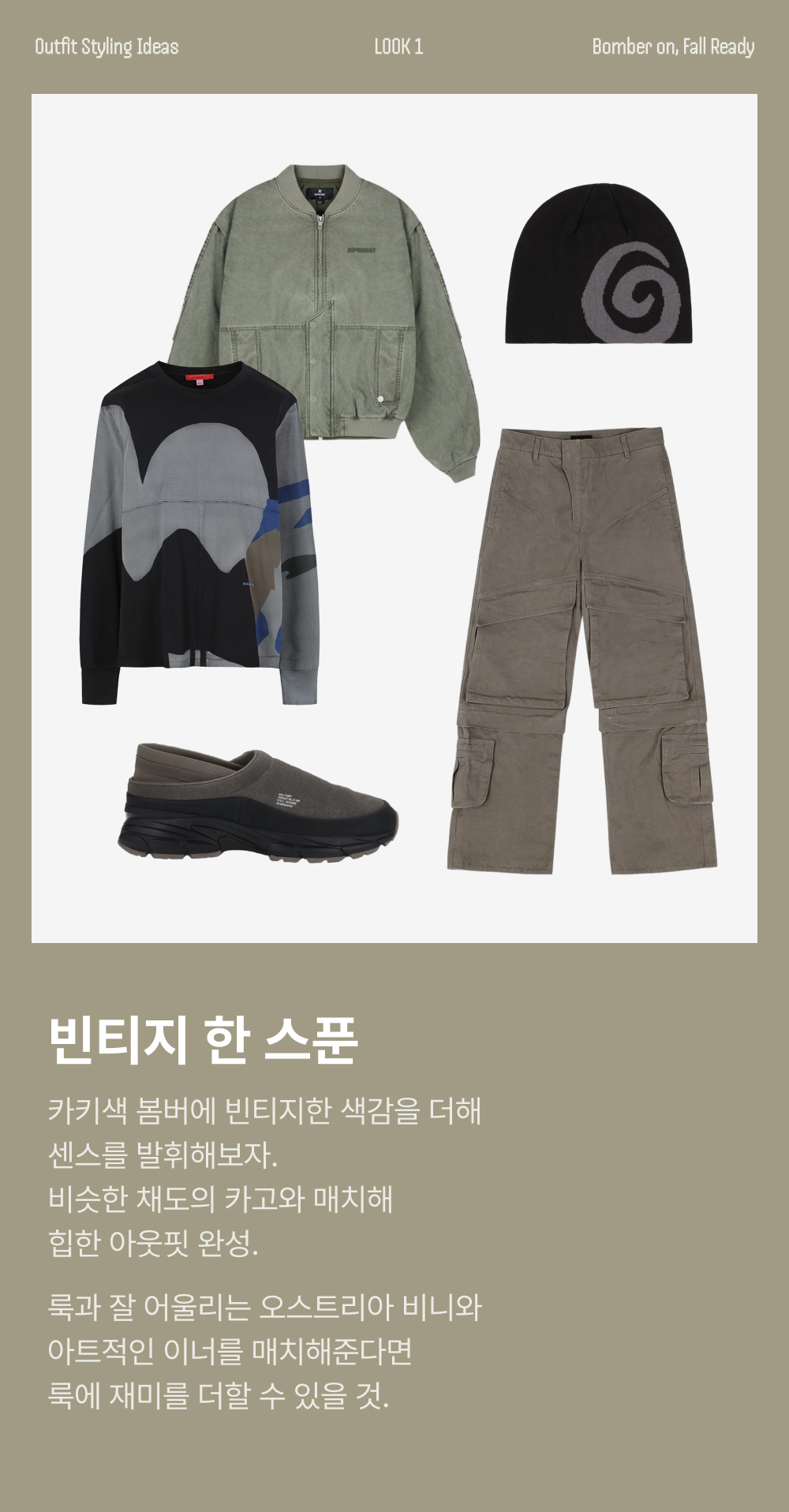 리프레젠트 인셋 슬리브 봄버 카키 - 24FW