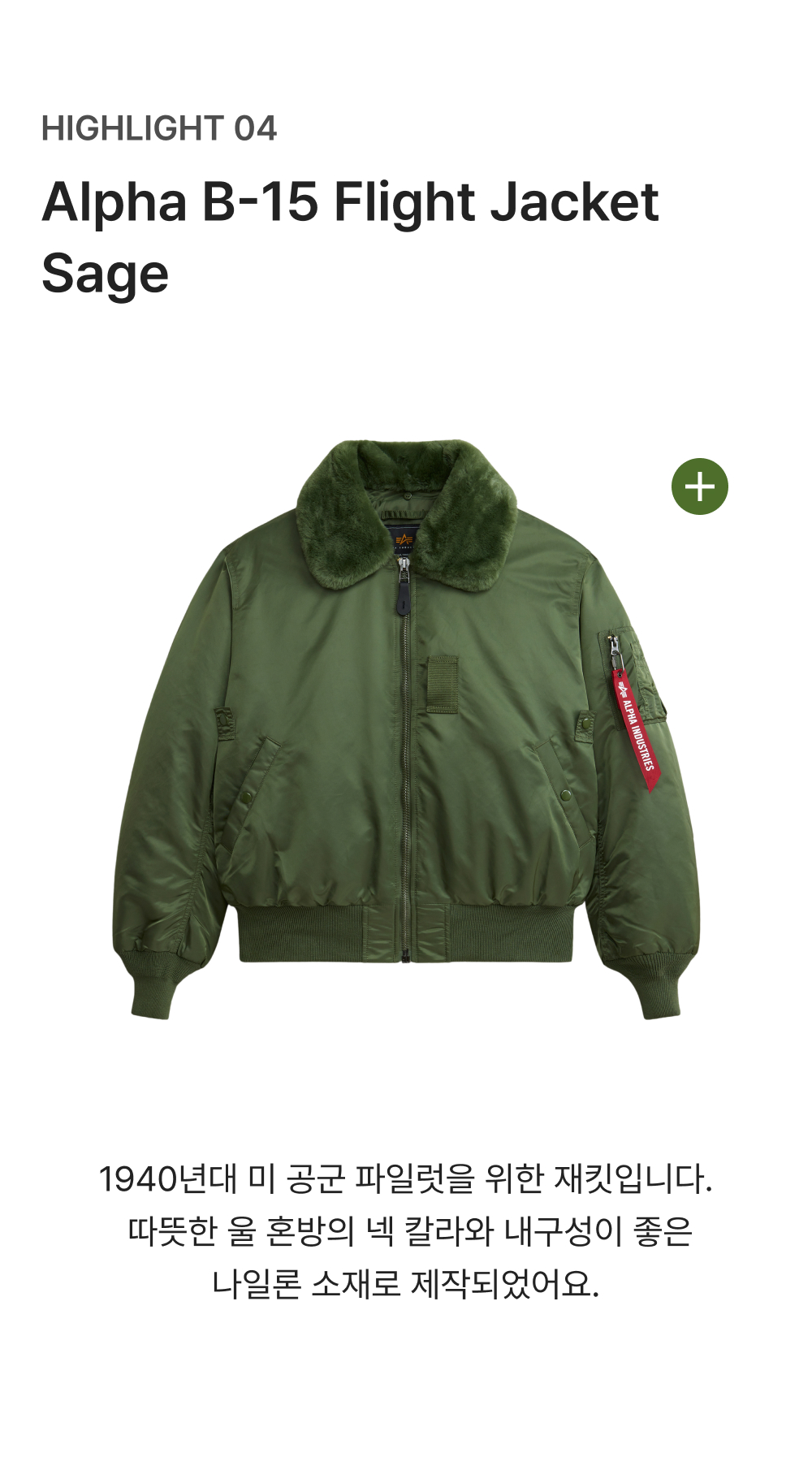 알파 인더스트리 알파 B-15 플라이트 재킷 세이지