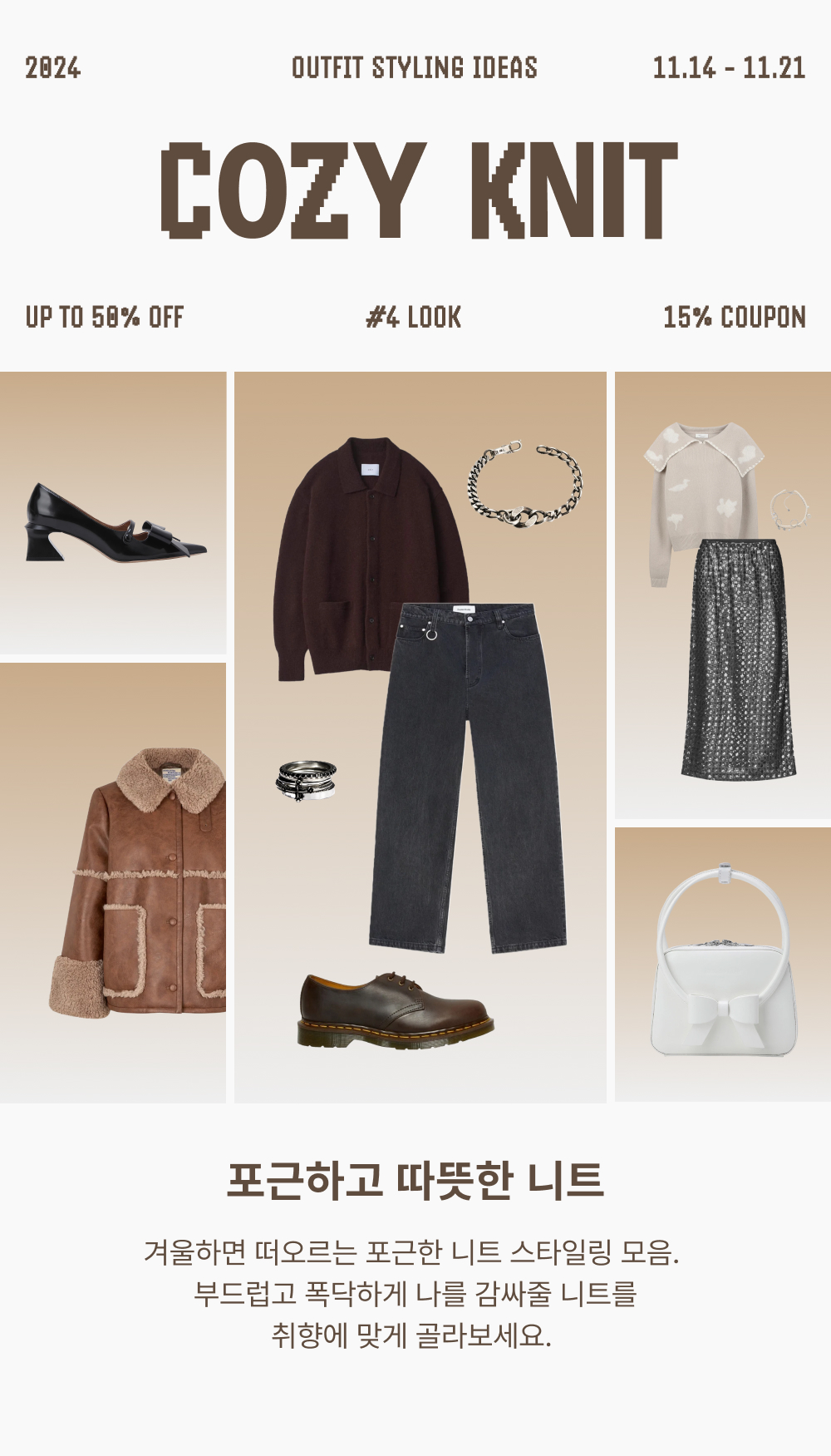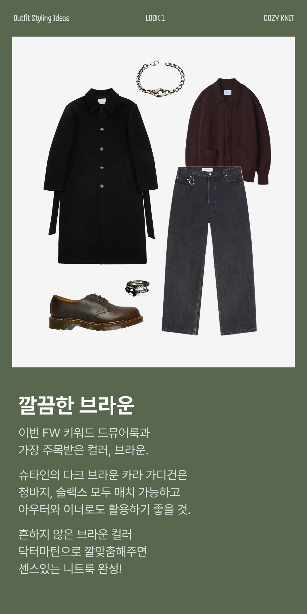 슈타인 파인 알파카 카라 가디건 다크 브라운 - 24FW