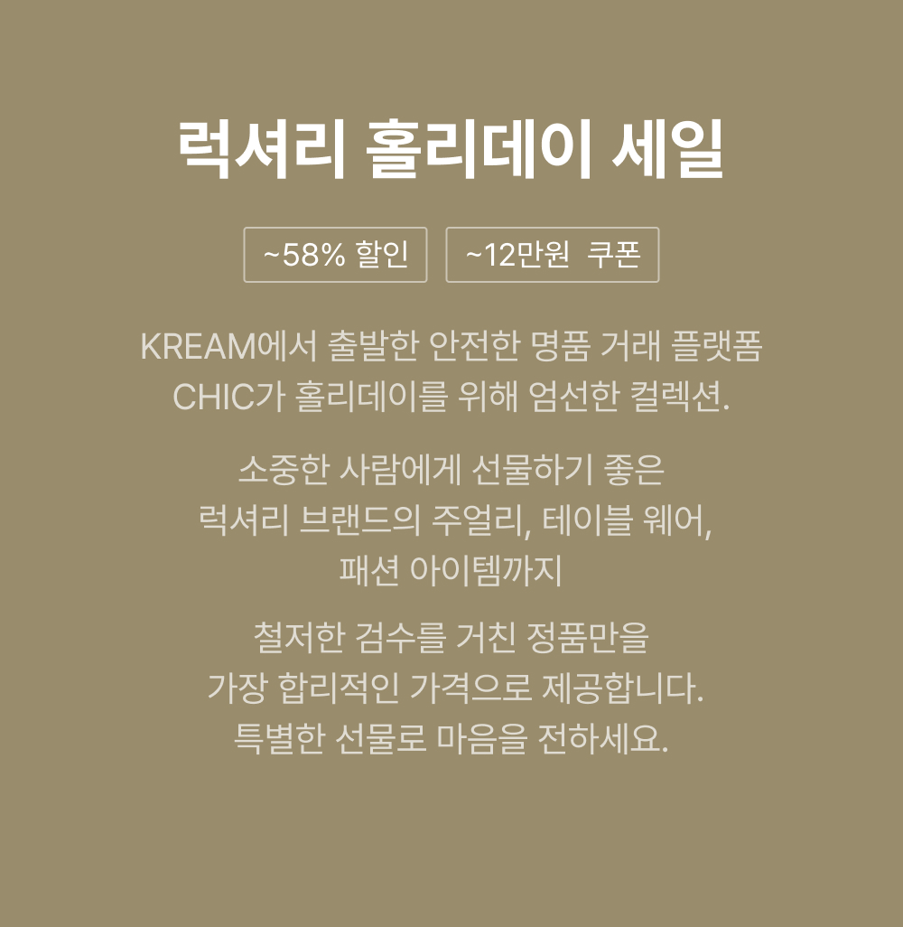 - 기획전에 포함된 상품은 정품 검수가 완료된 100% 정품입니다. 가품일 경우 300% 보상하는 책임제도를 시행하고 있습니다.(구입 확정일로부터 2년 이내의 주문건에만 해당됩니다.)