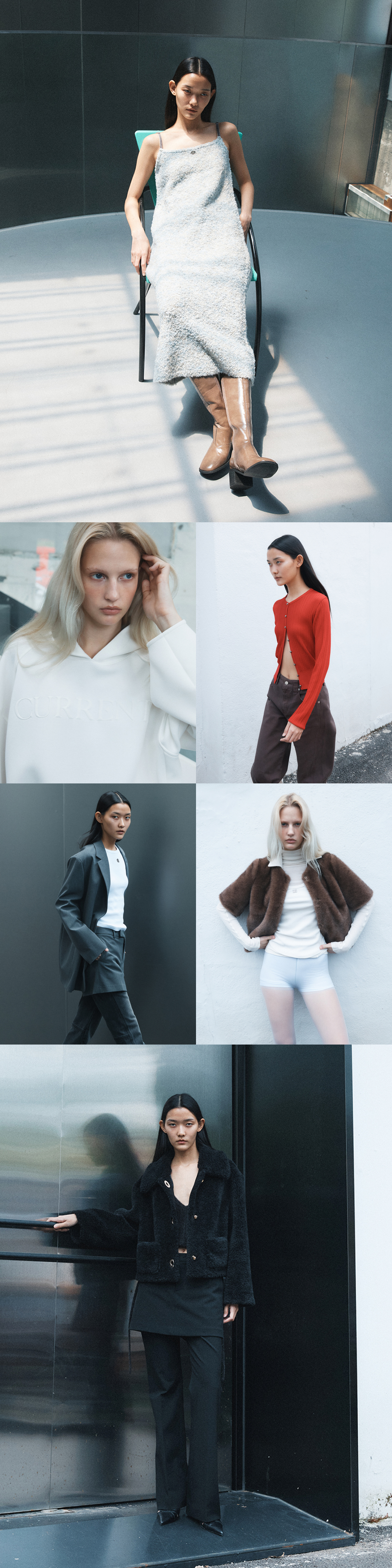 커렌트 페이크 퍼 셋인카라 자켓 그레이