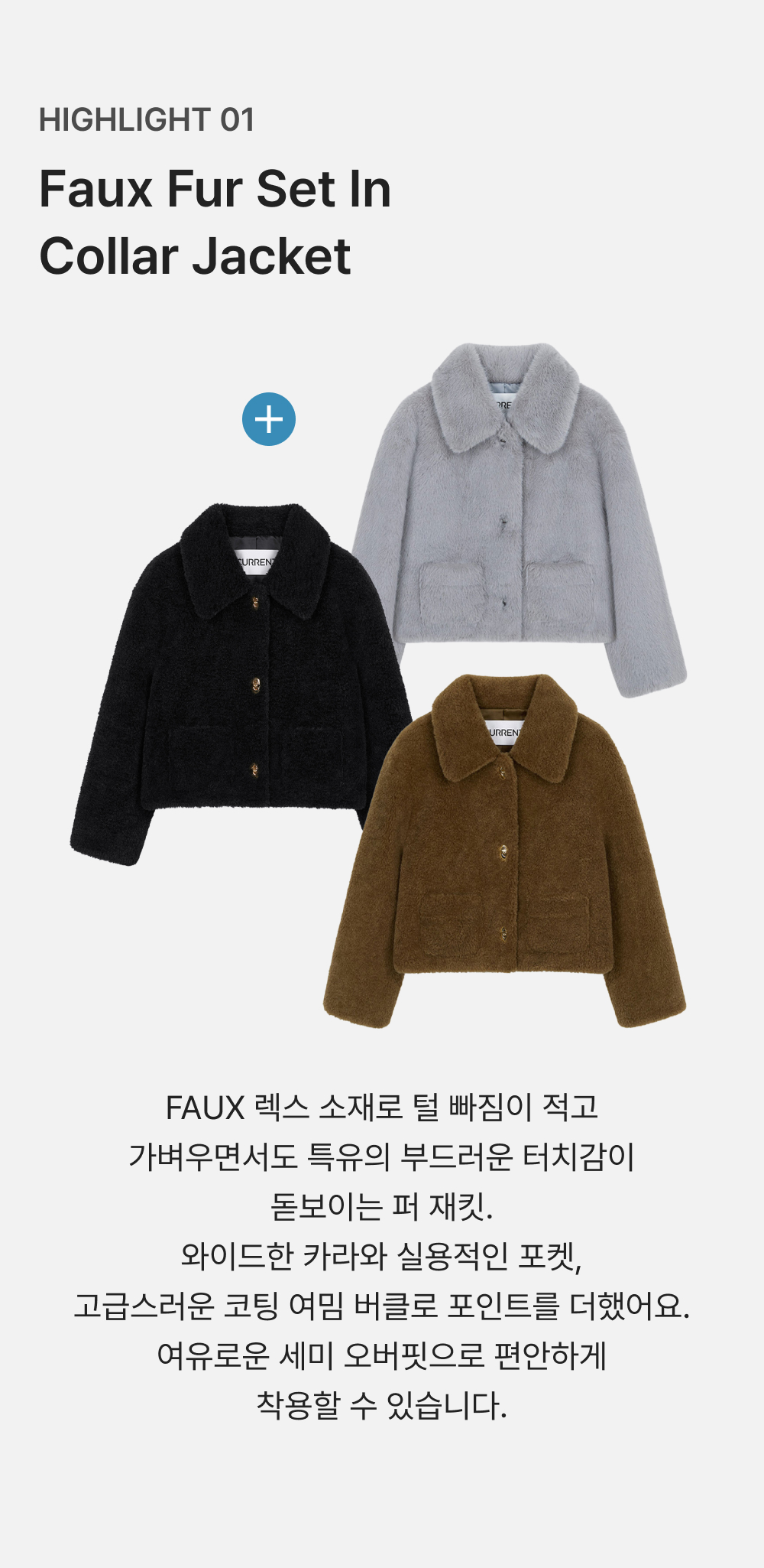 커렌트 페이크 퍼 셋인카라 자켓 블랙