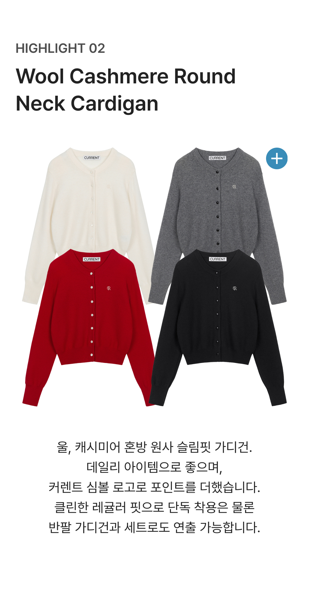 커렌트 울 캐시미어 라운드넥 가디건 크림