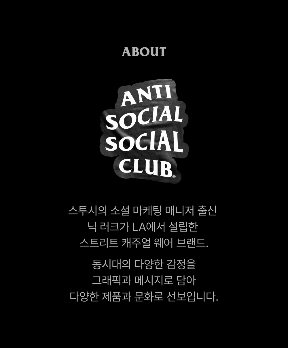 안티소셜소셜클럽 케이 사인 후드 블랙